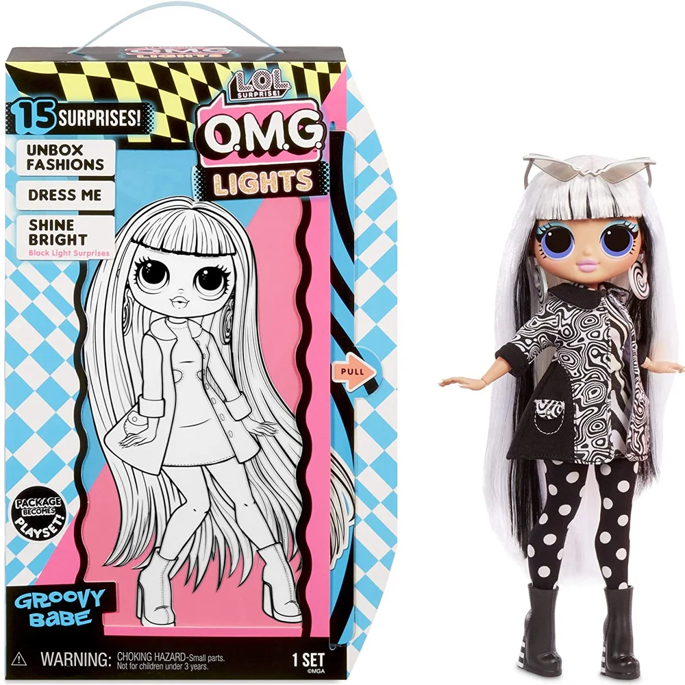 Распакуйте 15 сюрпризов с L. О. L. Сюрприз! О. М. Модная Кукла G. fashion с потрясающими функциями, уложенными волосами и сочлененными для множества поз Ракурсы платья в ее свирепой моде и сказочных аксессуарах. Совет Pro: руки съемные для удобства одевания. Включает модную куклу, модную одежду, обувь, аксессуары, коробку для шляп, черный светильник, щетку для волос, мешок для одежды, наклейку, вешалку, подставку для кукол и многоразовую упаковку, игровое пространство. Соберите все 4 л. О. L. Сюрприз! О. М. G. Модные куклы.