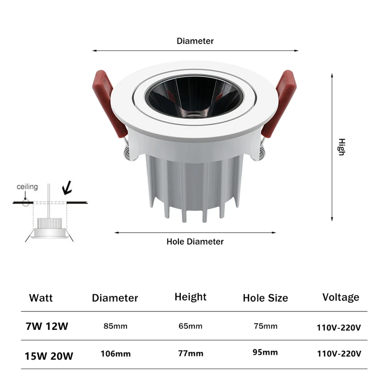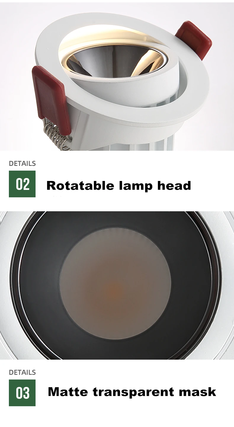 1 шт. круглый приглушаемый антибликовый светодиодный встраиваемый потолочный светильник 7 Вт 9 Вт 12 Вт светодиодный потолочный прожектор с регулируемым углом освещения домашнее освещение