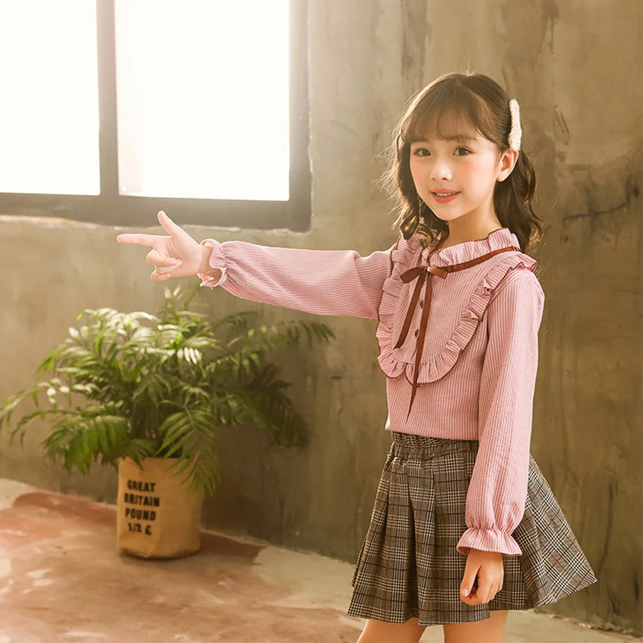 Блузка для девочек, белая, с бантом, школьная, с рукавом-бабочкой, для подростков