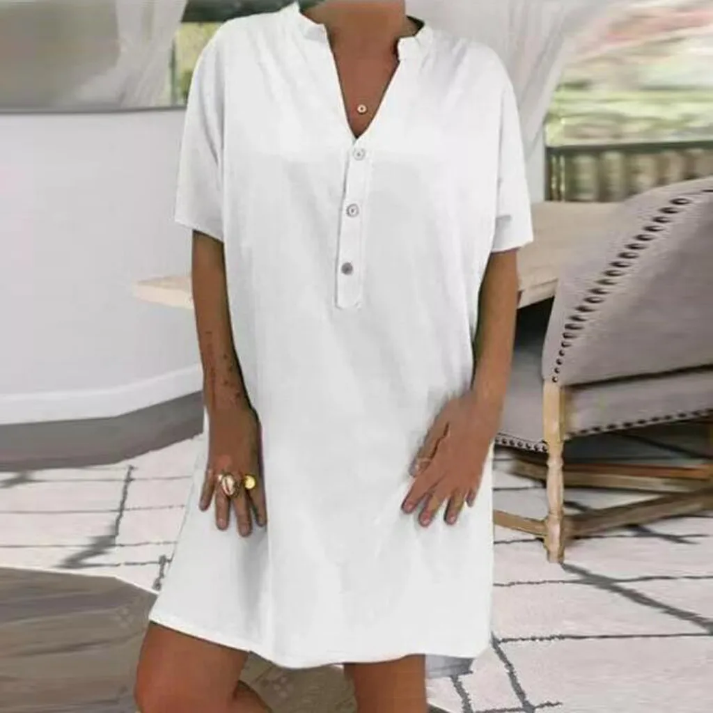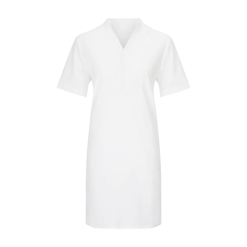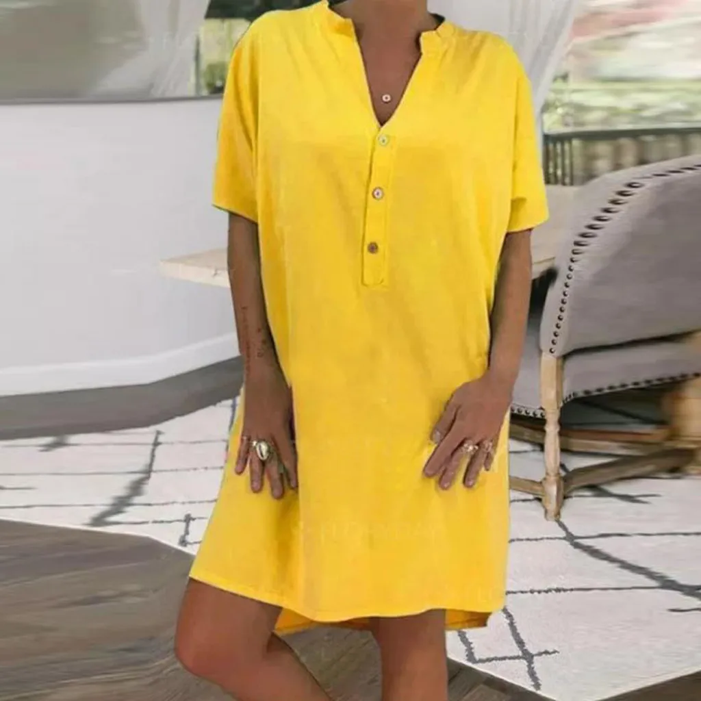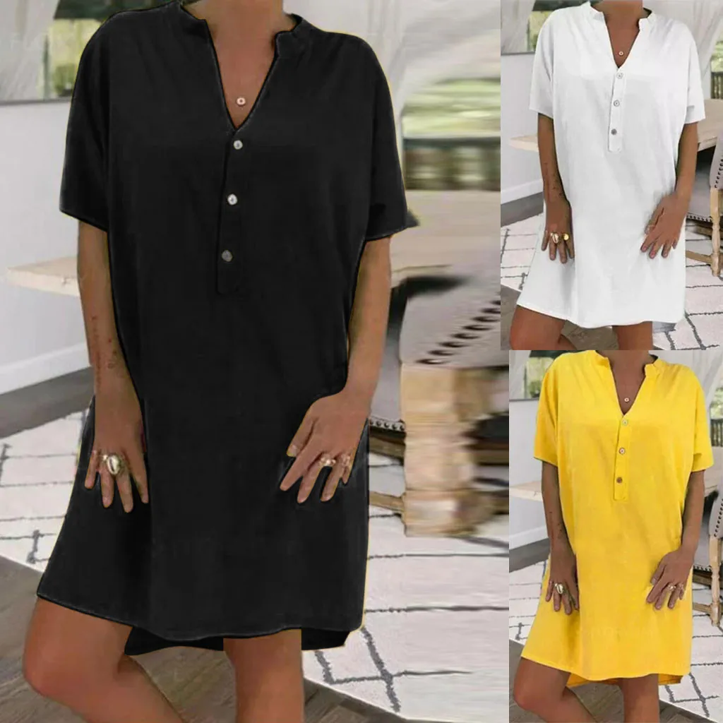 Женское однотонное Хлопковое платье на пуговицах с коротким рукавом и v-образным вырезом