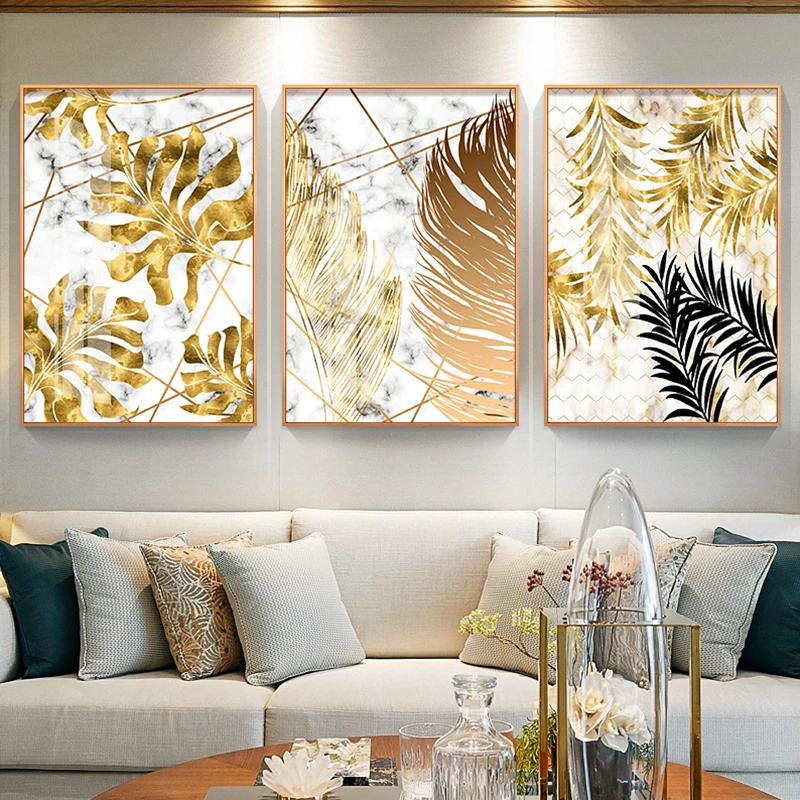 Скандинавские растения, холщовая картина в виде золотого листа, цветочные растительные плакаты с принтом, настенные художественные картины для гостиной, украшения для дома, куадросы