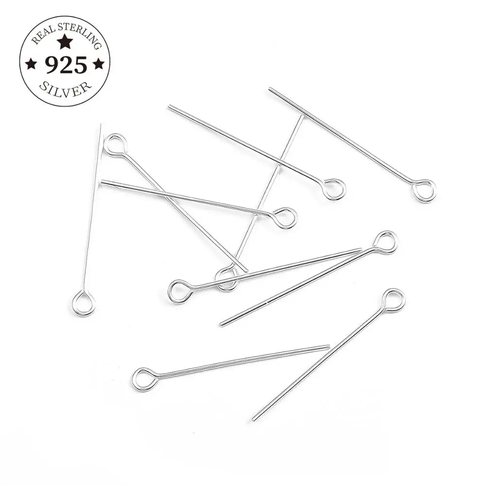 Булавки для глаз из серебра 925 пробы, 10 шт.лот, 15 20 25 30 40 50 мм