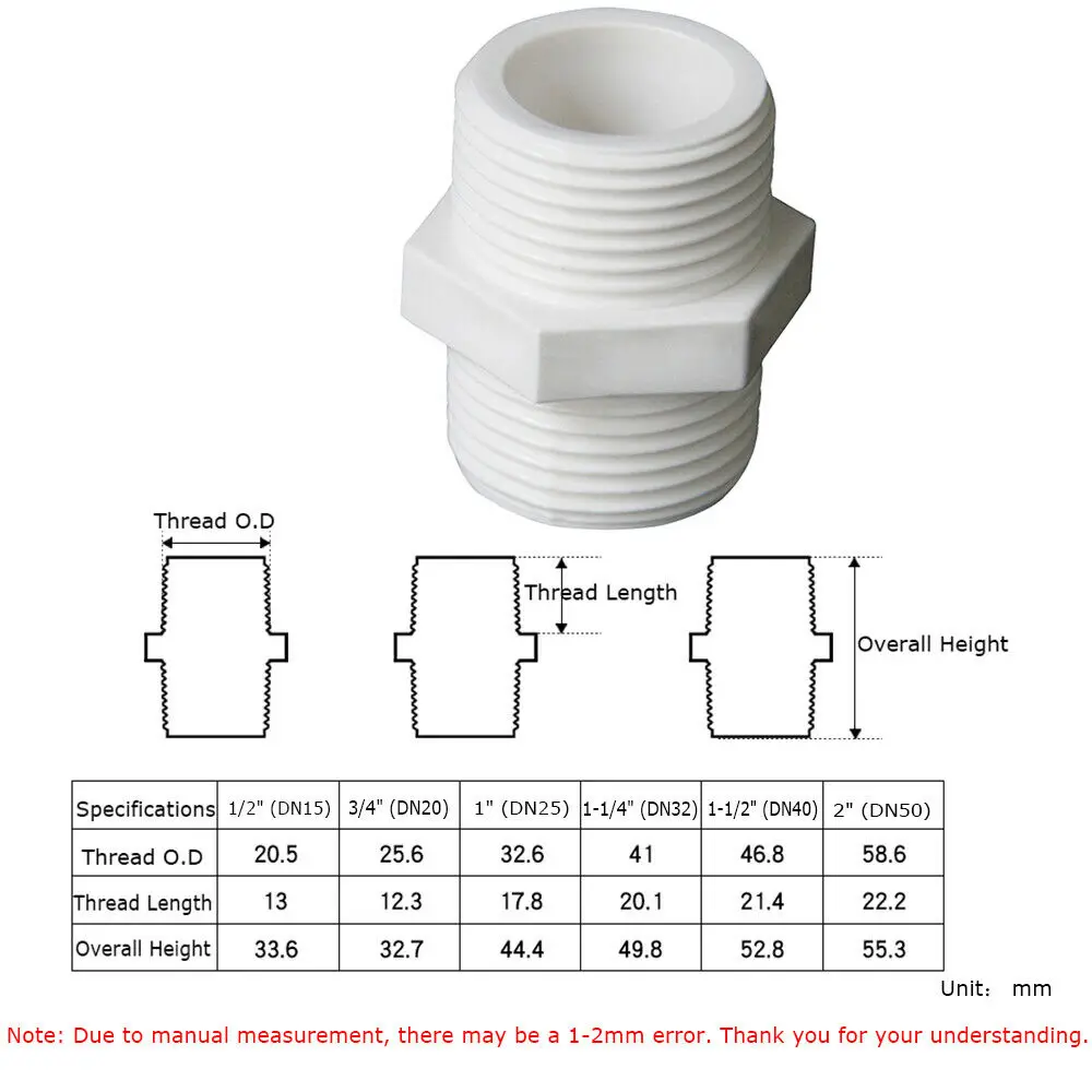 ПВХ мужской BSP Резьбовая Шестигранная ниппель 12 ",34",1 ",1-14",1-12 ",2" давление трубы фитинги соединитель трубы Аквариум Пруд бассейн Сад