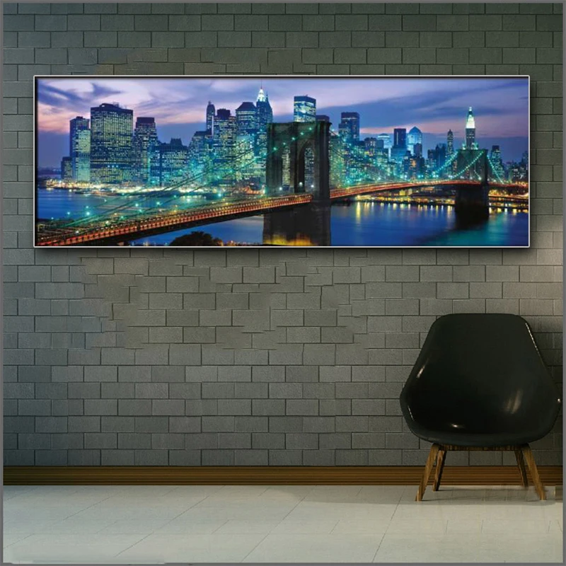 Нью-Йорк пейзаж удлиненный 5D DIY Алмазная картина полный квадратный Круглый Алмазный вышитый ночной сцена мозаика рукоделие дома dec