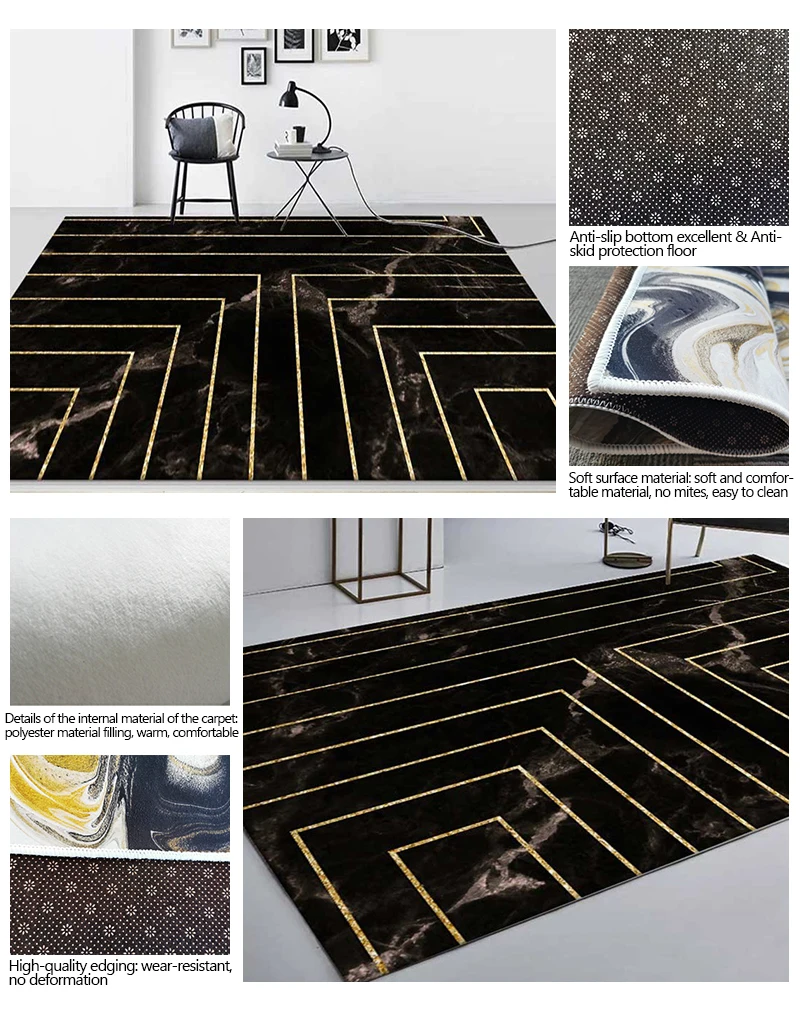 Ковер в скандинавском стиле Bubble Kiss, Черные мраморные золотые линии, узорные коврики для гостиной, домашние Нескользящие декоративные напольные коврики для спальни