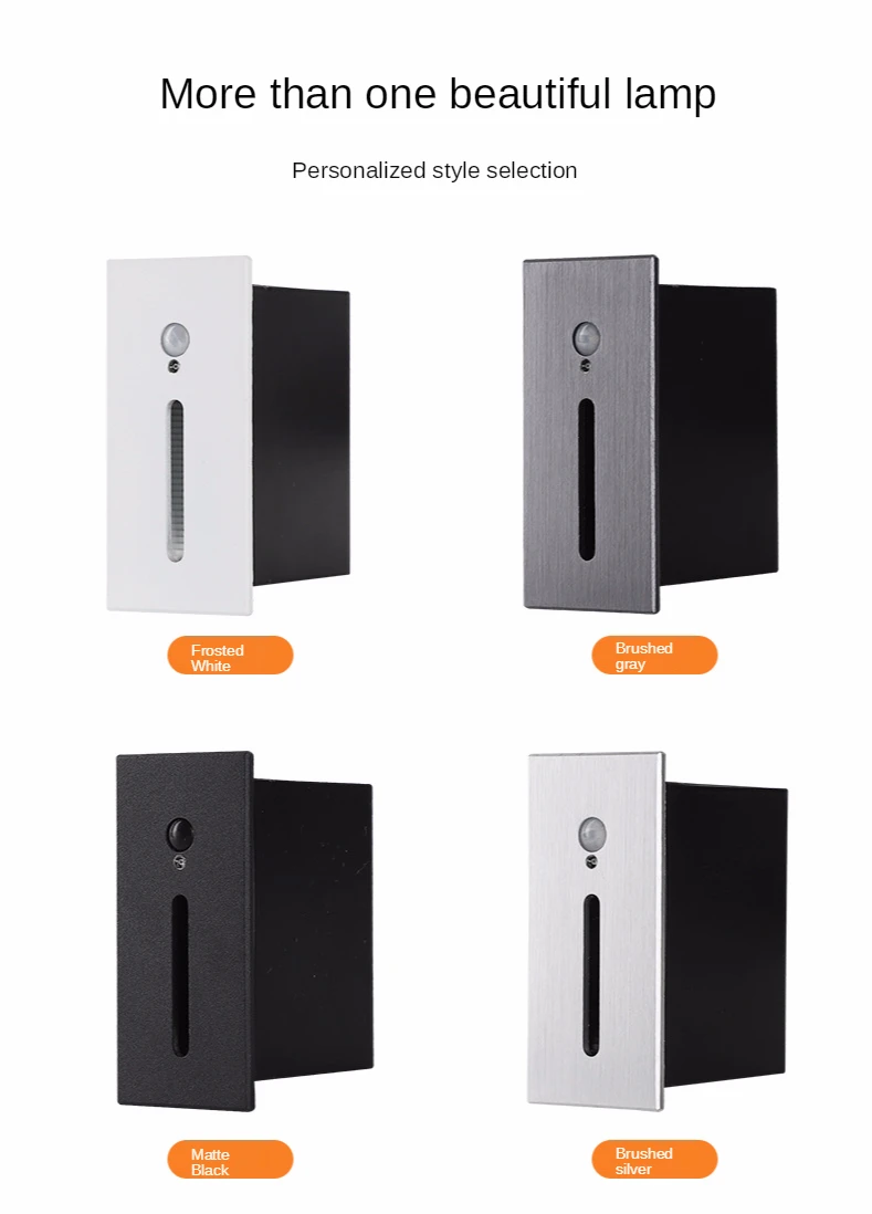 Датчик движения 3W Утопленные лестницы Освещение Крытый открытый угол Настенные светильники шаг лестница Прихожая лампа