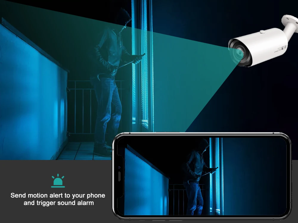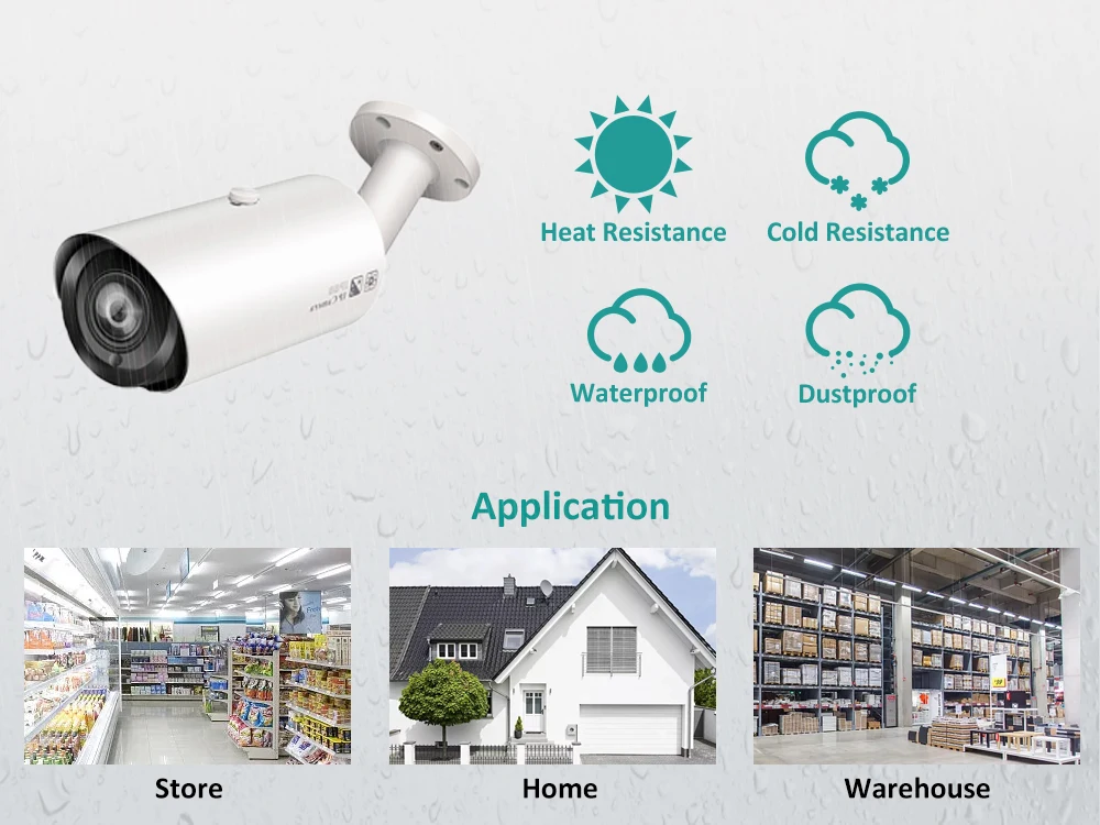 Наша камера подходит как для наружного, так и для внутреннего использования. IP66 Всепогодный Дизайн для использования в нескольких сценариях (офис, улица, дом, фабрика, рынок и т. Д.). Рабочая температура камеры:-25 °C ~ 50 °C (-13 ℉ ~ 122 ℉)