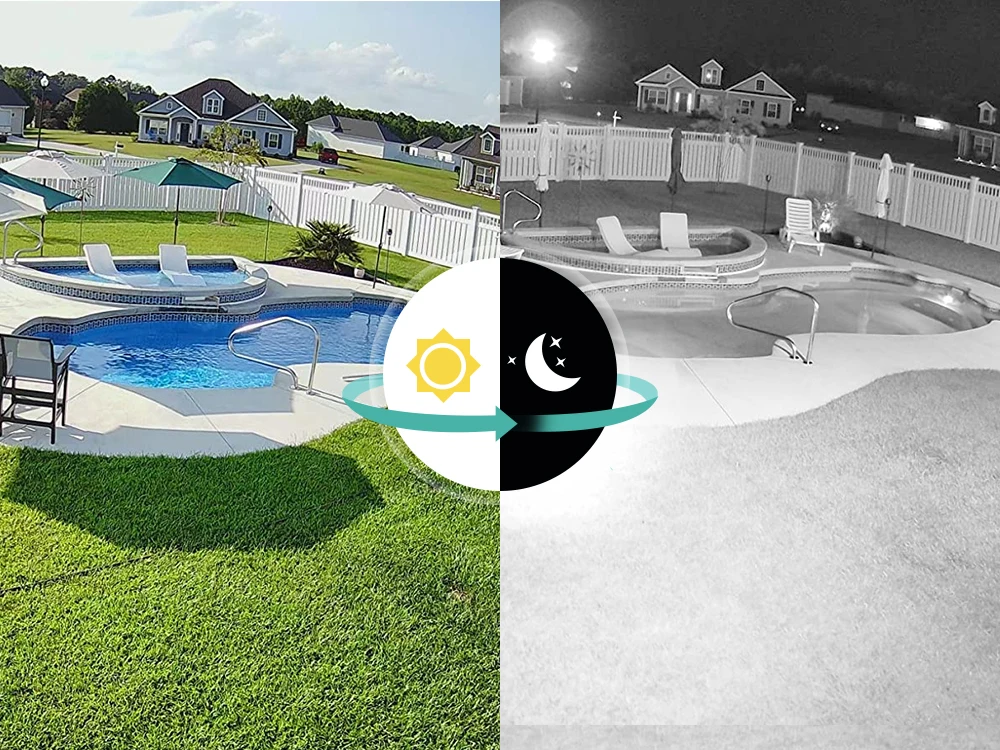 Инфракрасное ночное видение, автоматическое переключение днем и ночью. Расстояние ночного видения может достигать 30 метров.