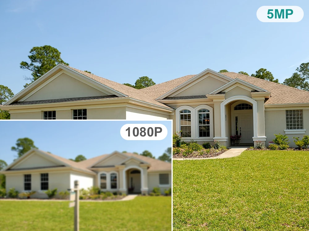 Более высокое разрешение означает, что больше деталей изображения должно быть captured.5 мегапиксельное Высокое разрешение намного четче, чем 1080p и 720p.