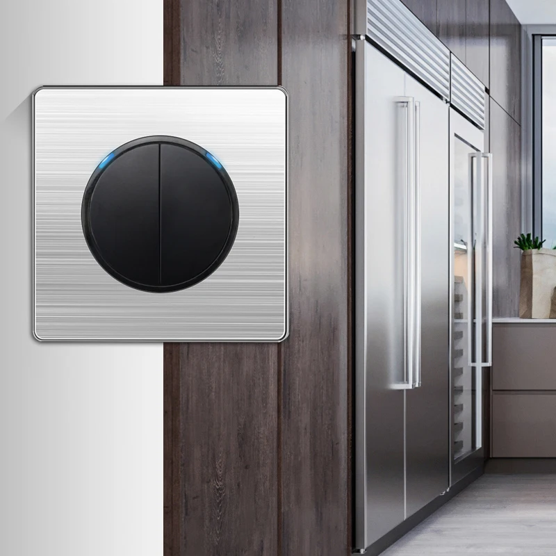 Особенность: -Защита от перегрузки: автоматически отключает питание. -Роскошный дизайн: энергосбережение. -Может управлять лампами накаливания, энергосберегающими лампами, фонарями светодиодный светодиодными лампами и так далее. -Идеально подходит для дома, офиса, гостиниц, больниц, заводов и других мест. -Светильник индикатор Спецификация: Материал: нержавеющая сталь, Твердая стальная рама Цвет: черный Тип: настенный выключатель/розетка Рабочее напряжение: 250 В переменного тока Рабочая частота: 50/60 Гц Срок службы: частота касания 100000 Размер переключателя (Д * Ш): 86 мм * 86 мм Рассрочка шага отверстий: 60 мм Посылка входит: 1x переключатель 2 винта