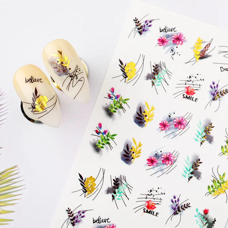 1 лист золотистых водных наклеек для ногтей Harunouta, Летние Водные переводки с цветами, накидки из фольги для ногтей для украшения ногтей своими руками