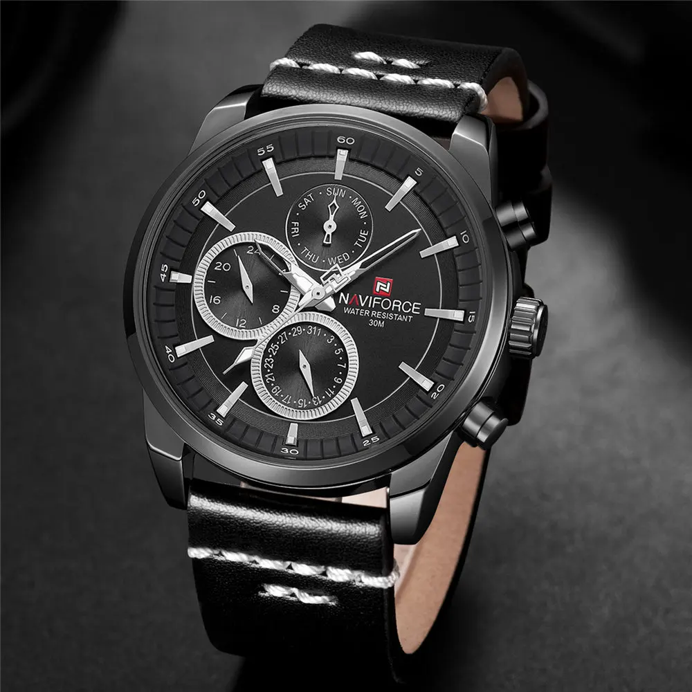Часы NAVIFORCE Мужские кварцевые, с кожаным ремешком, с большим циферблатом, спортивные, военные, 24 часа, подарок для мужчин, 2020