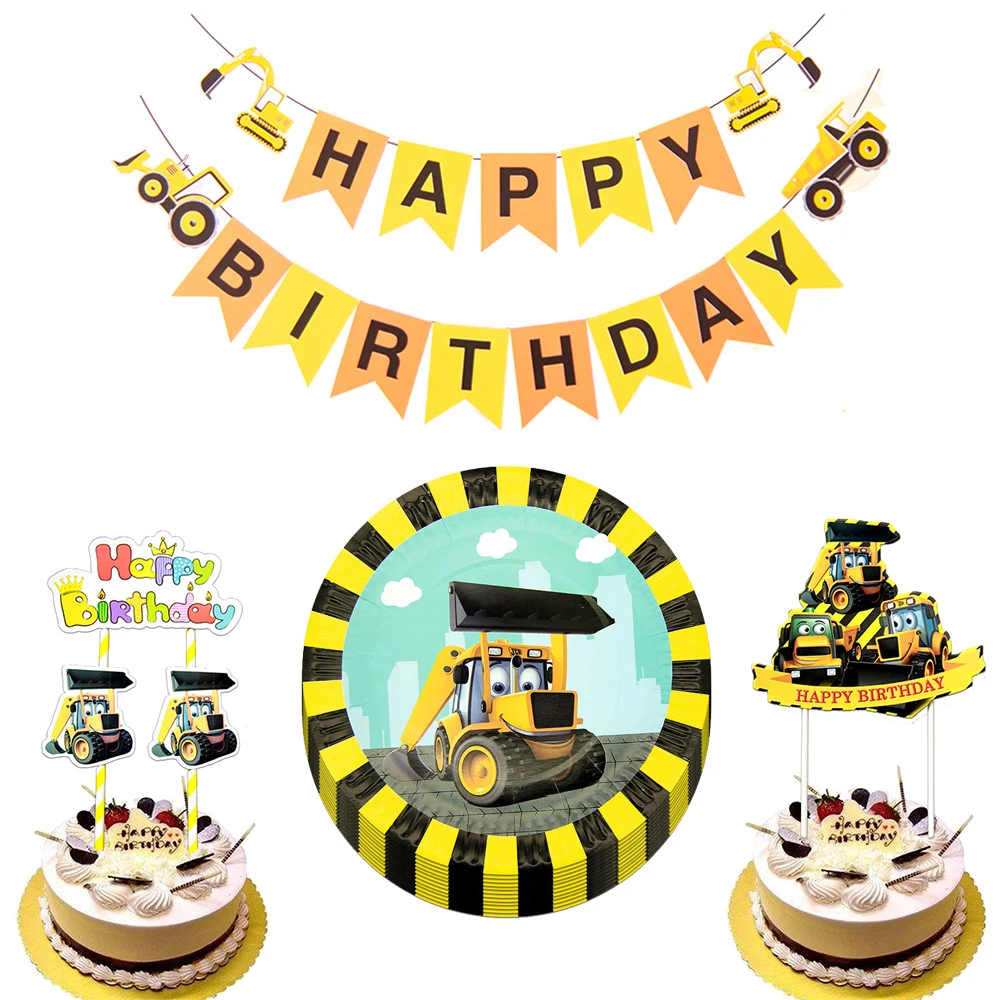 Одноразовая посуда для строительных машин, экскаватор вечерние бумажная тарелка, баннер для детского праздника, украшение для дня рождения, вечеринки, мяч