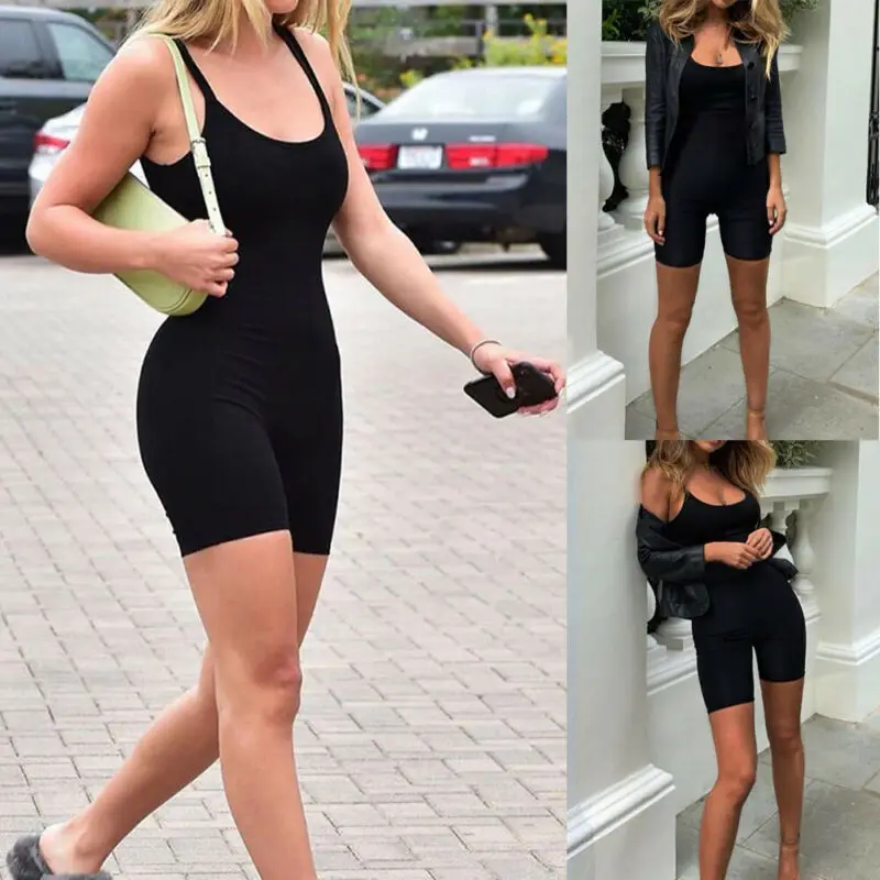 Женский спортивный комбинезон на бретелях, эластичный спортивный костюм без рукавов, шорты для йоги, фитнеса и тренировок, костюм для бега