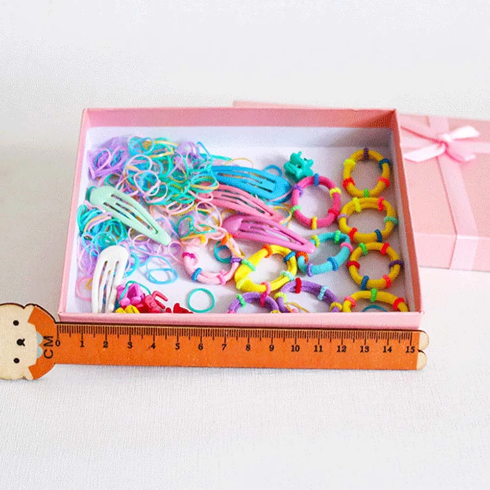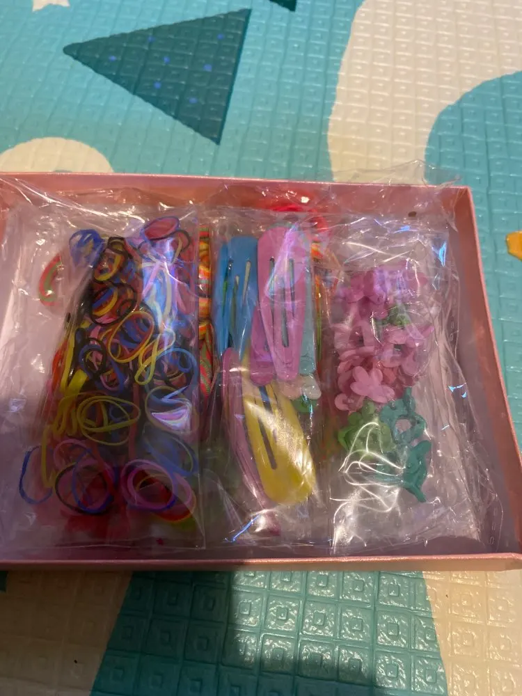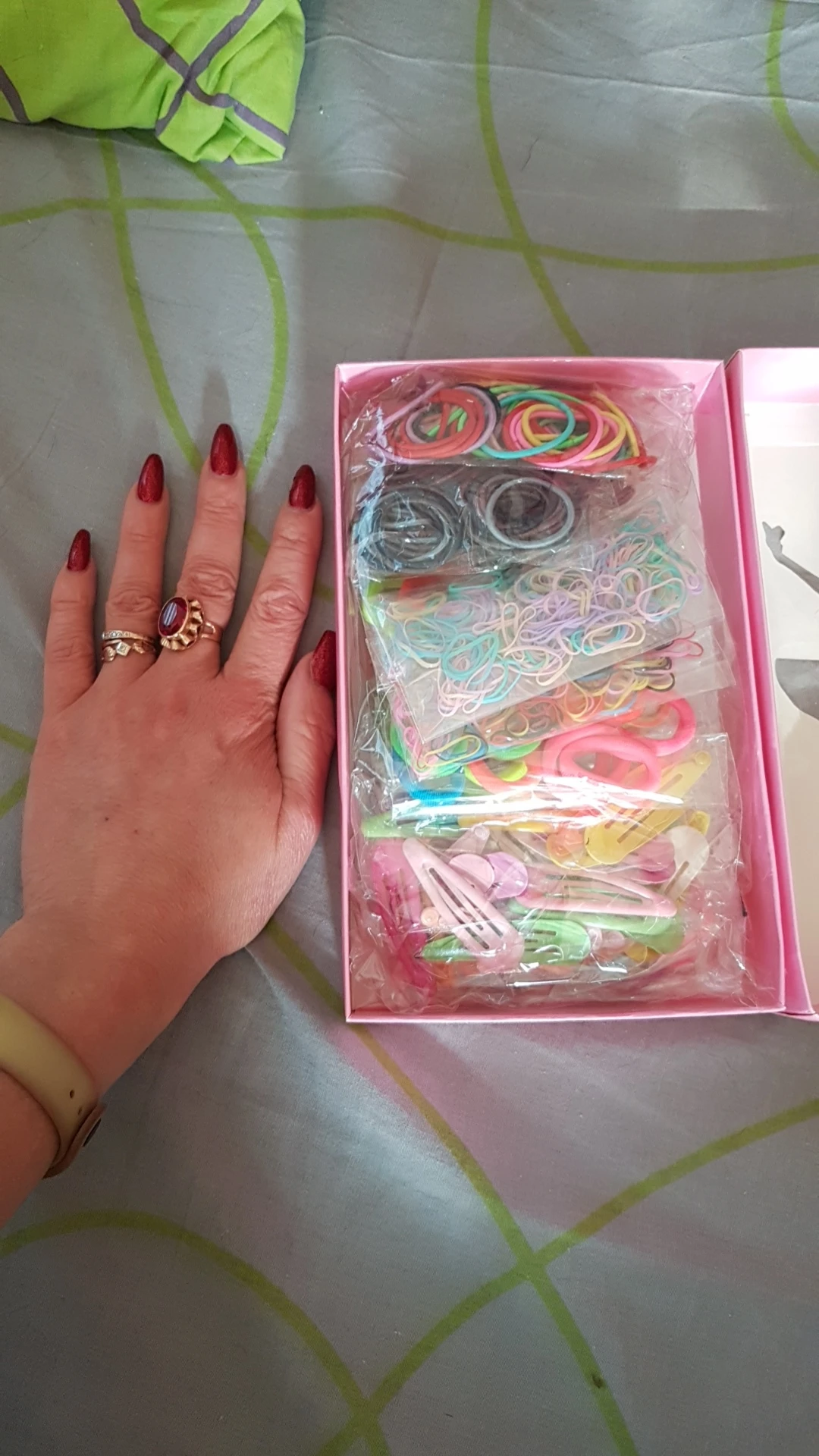 Резиночке очень маленькие и тоненькие, к тому же ещё скользкие. Цвета резинок бледные. Заколки яркие.