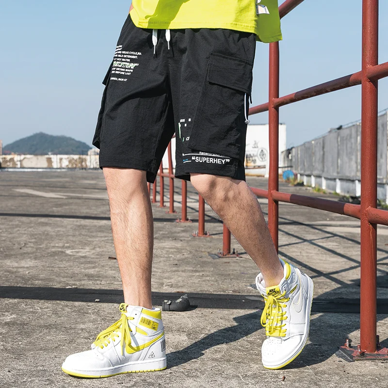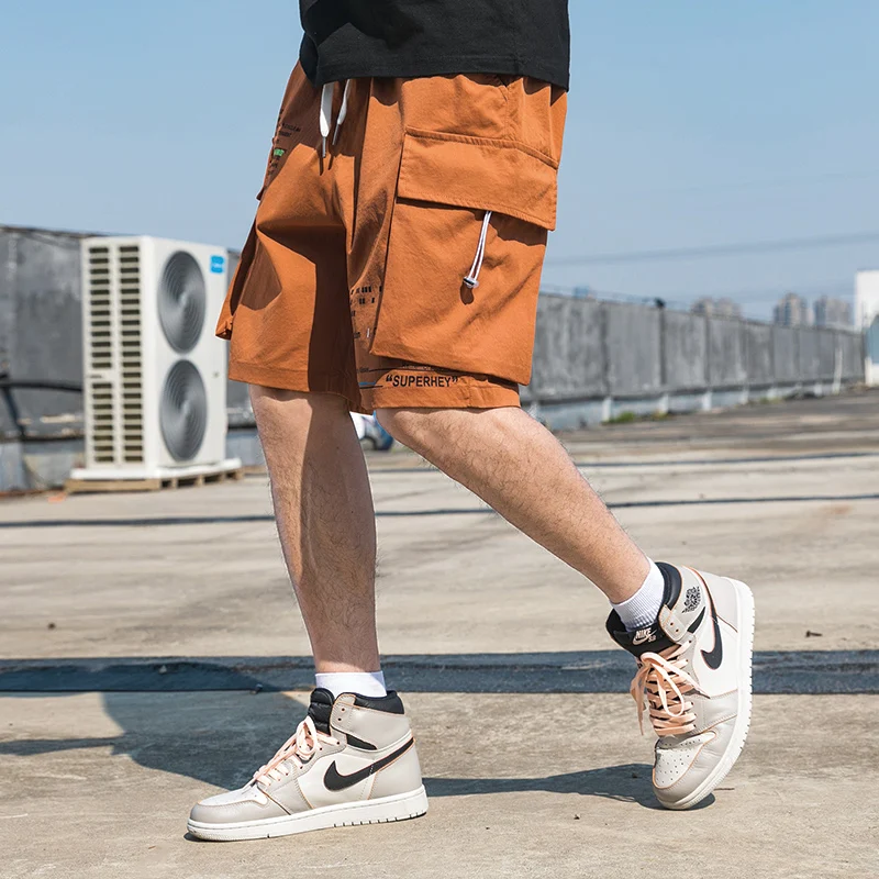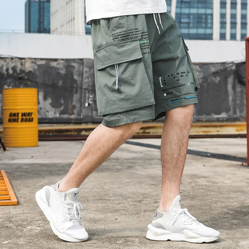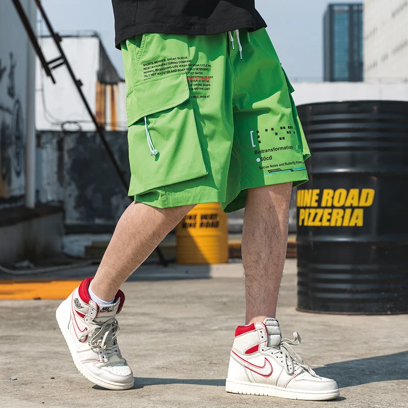 Мужские однодорожные карго шорты 2021 летние боковые Короткие Брюки с карманами Мужская хип-хоп Японская уличная одежда Harajuku бордшорты для мужчин