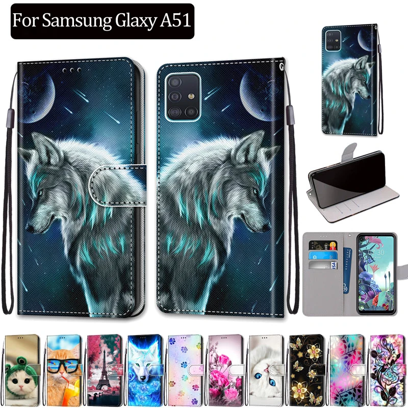 Кожаный чехол для Samsung Galaxy A51, флип-чехол, роскошный чехол с животными, милым мультяшным рисунком, чехол-бумажник для Samsung A51, флип-чехол