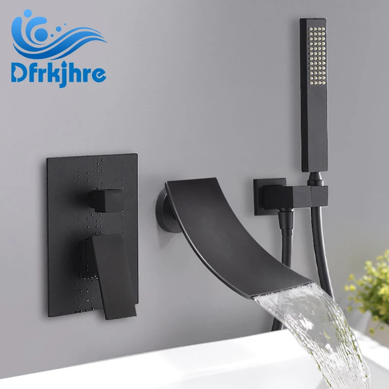 Черный хромированный смеситель для ванны с водопадом набор для ванной настенное крепление для ванны смеситель горячей и холодной воды смеситель для душа
