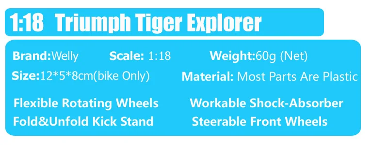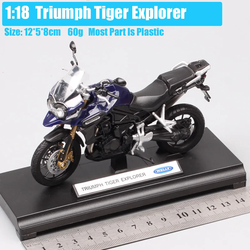 Маленький детский гоночный мотоцикл Welly Triumph Tiger Explorer 118 1200, Литые и игрушечные автомобили, модельные реплики мотоциклов, масштаб 800