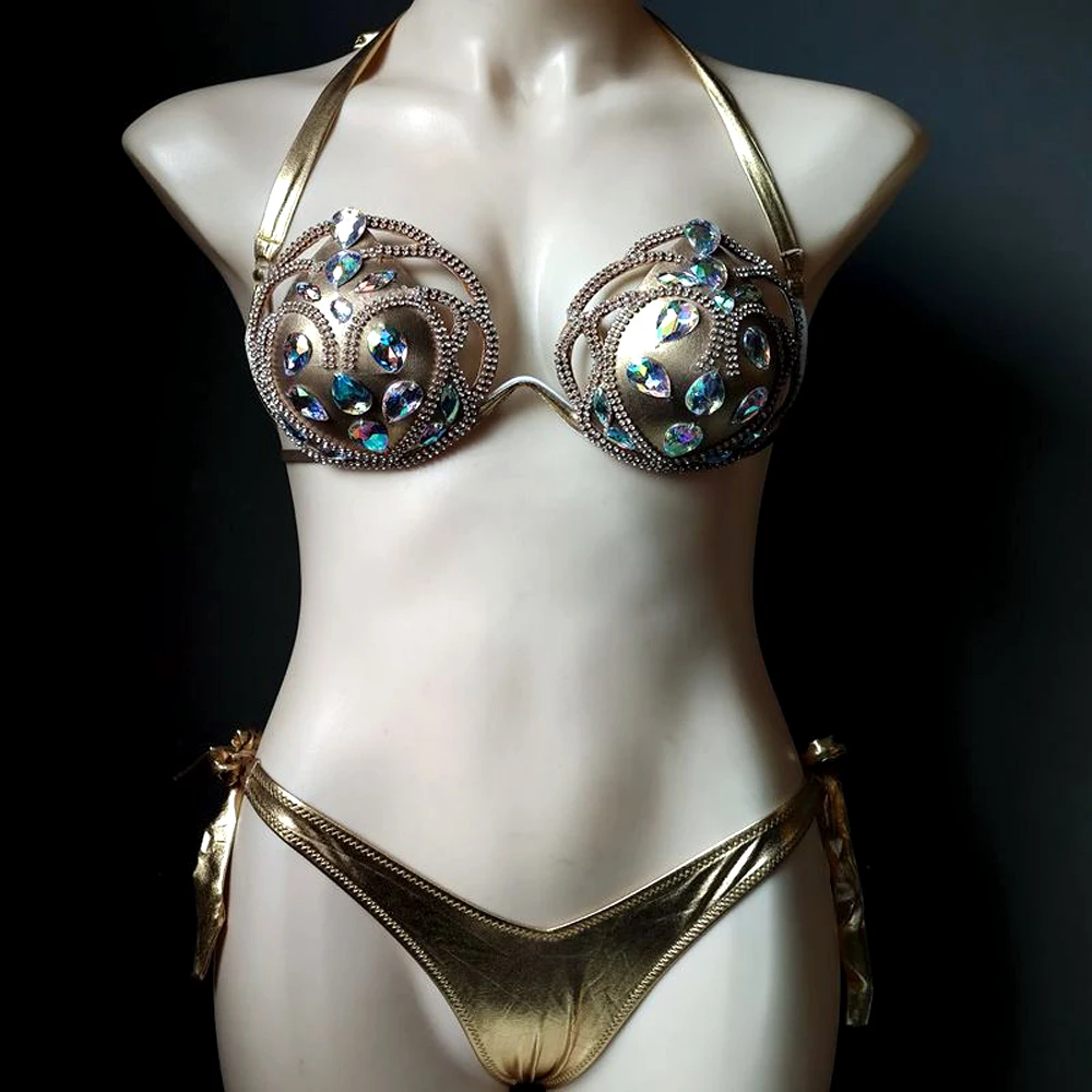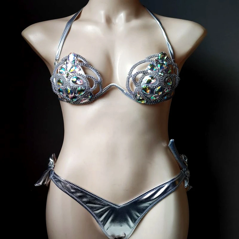 3 цвета, комплект бикини, Женский карнавальный бюстгальтер со стразами, стразы, сексуальные трусики для ночного клуба, набор бикини для праздника, костюм горящего человека