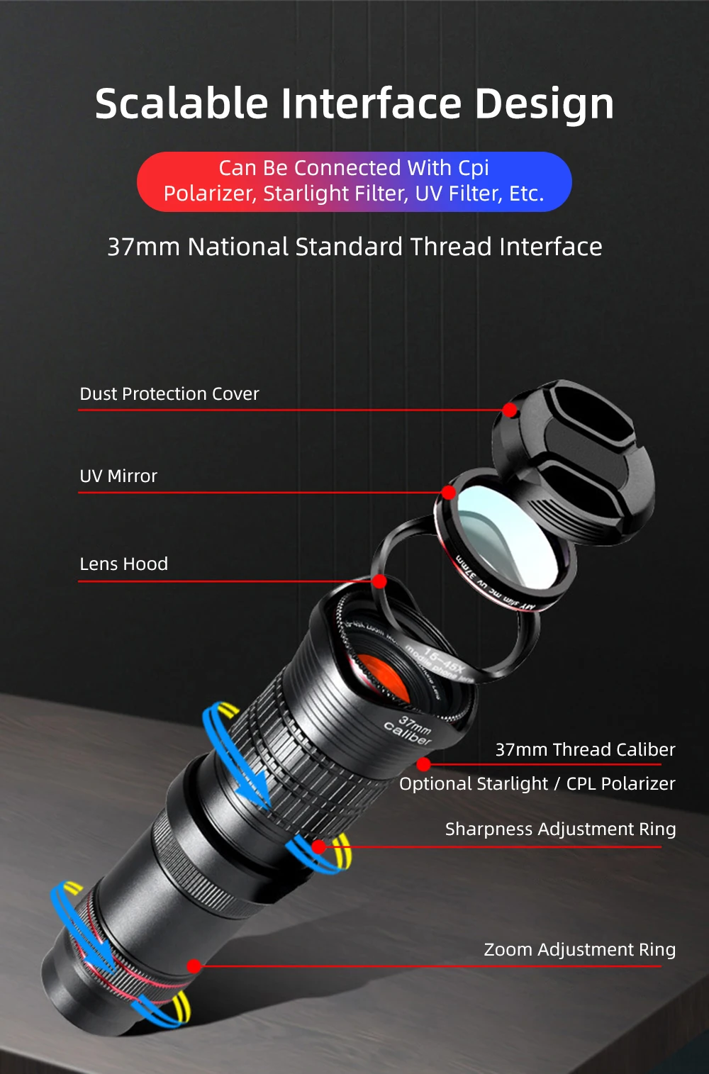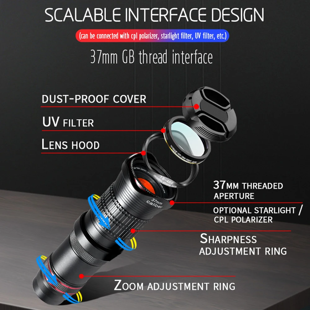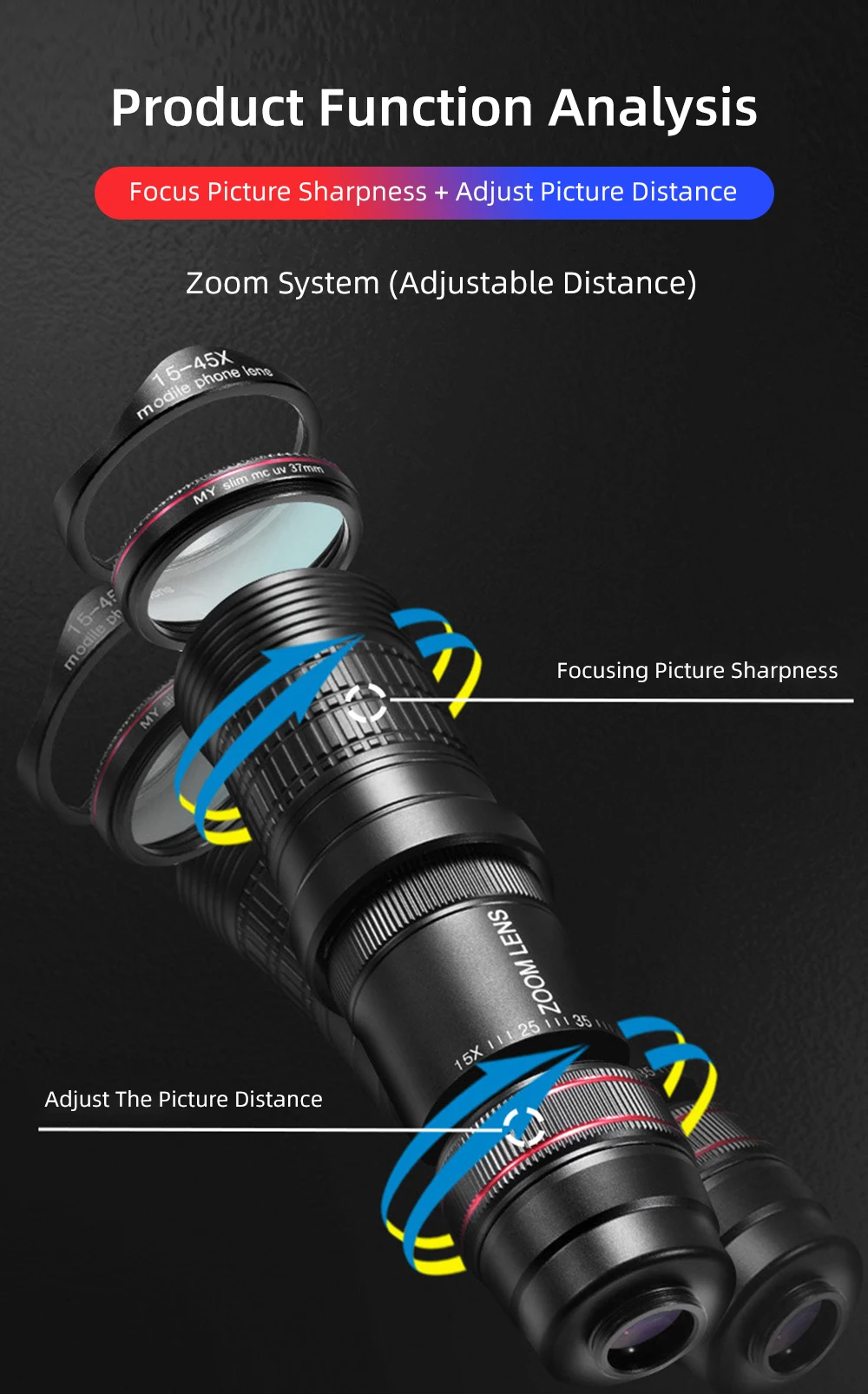 HD объектив для камеры телефона 45X, зум, телеобъектив, смартфон, внешний телескоп для iPhone 11 Pro, универсальный мобильный телефон, аксессуары