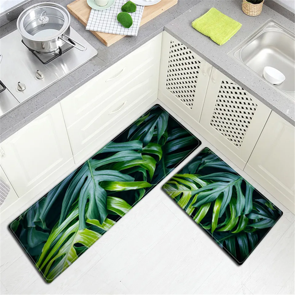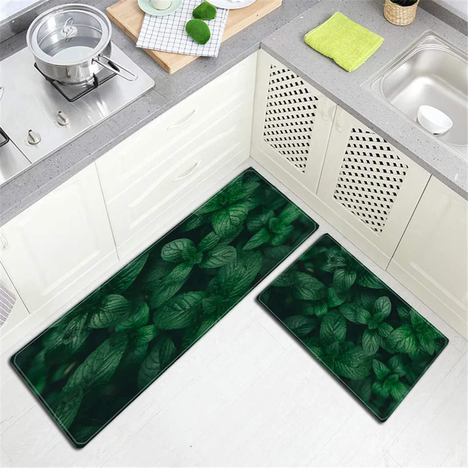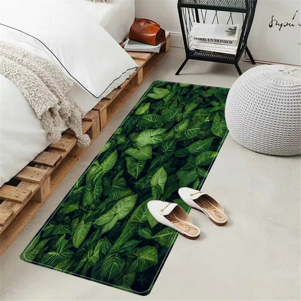 Трехмерный коврик с принтом зеленых листьев для кухни, напольный длинный ковер с эффектом памяти, ковер для ванной комнаты, противоскользящий прикроватный ковер для спальни