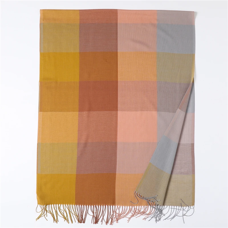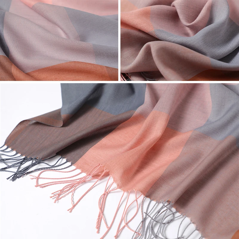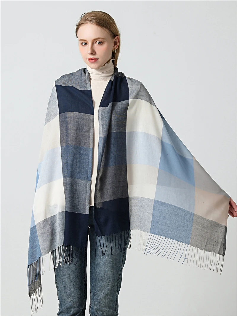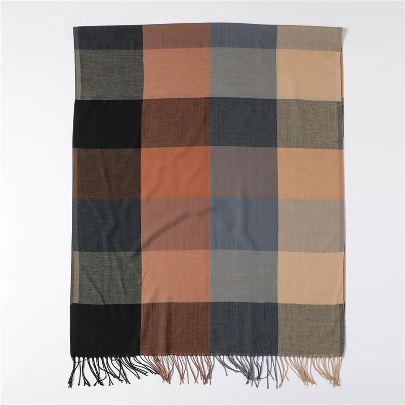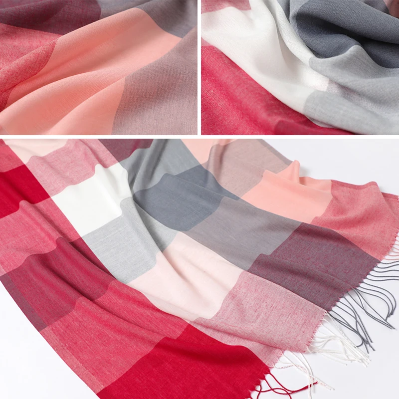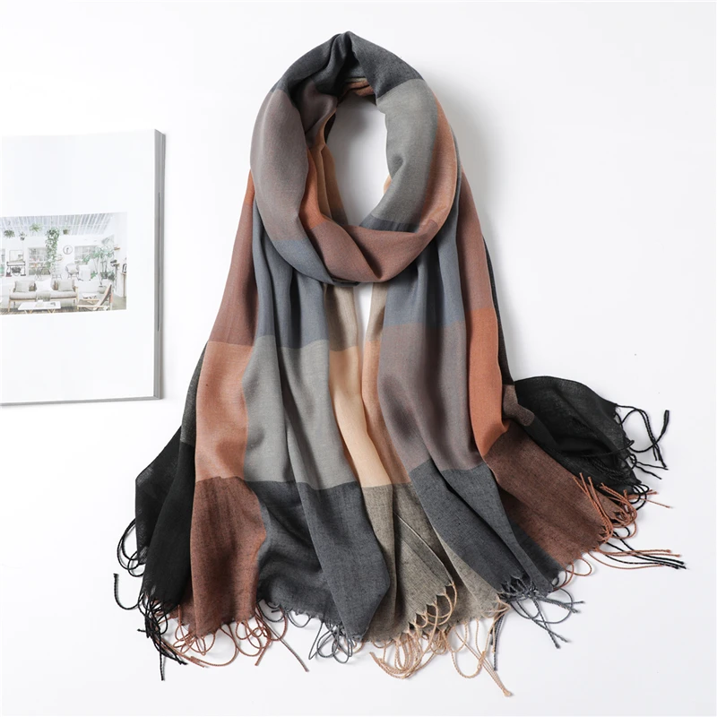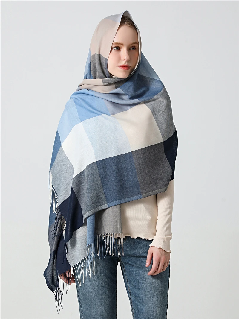 Шарф-Хиджаб Женский в клетку, Пашмина, дамские шали из фуляра, головная повязка с кисточками, кашемировые зимние шарфы, теплые женские шарфы, бандана, 2021