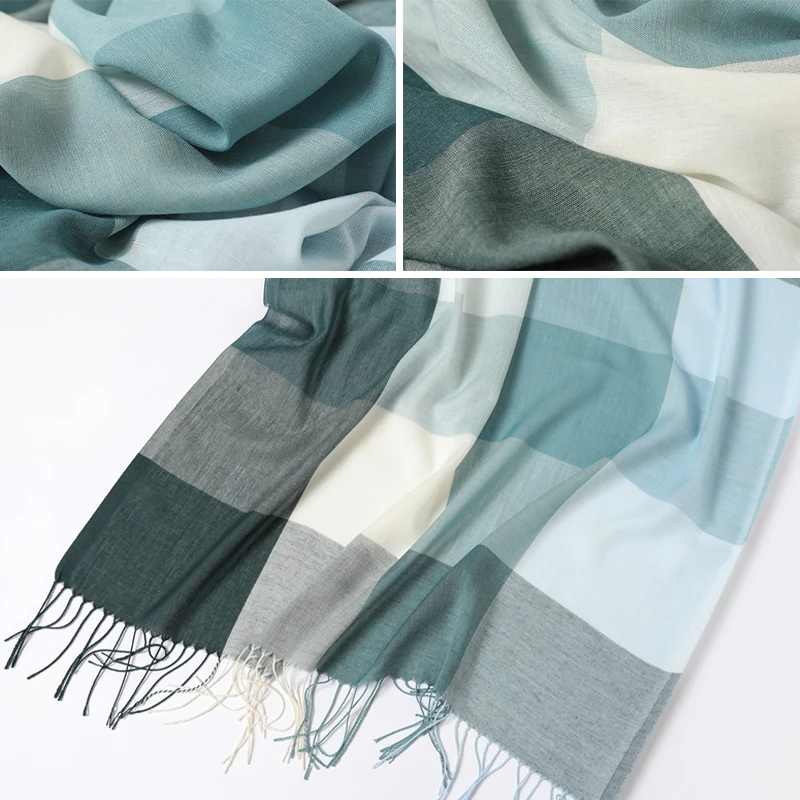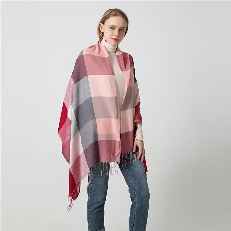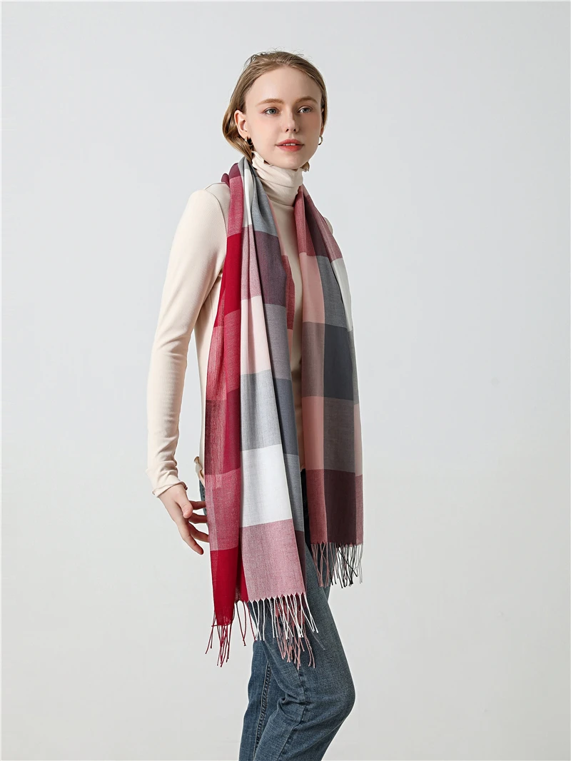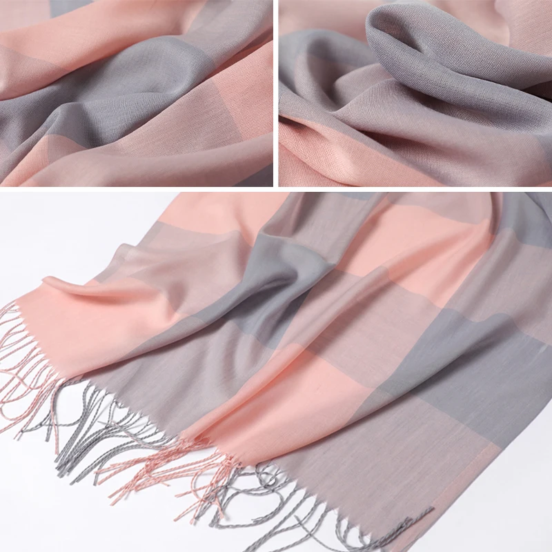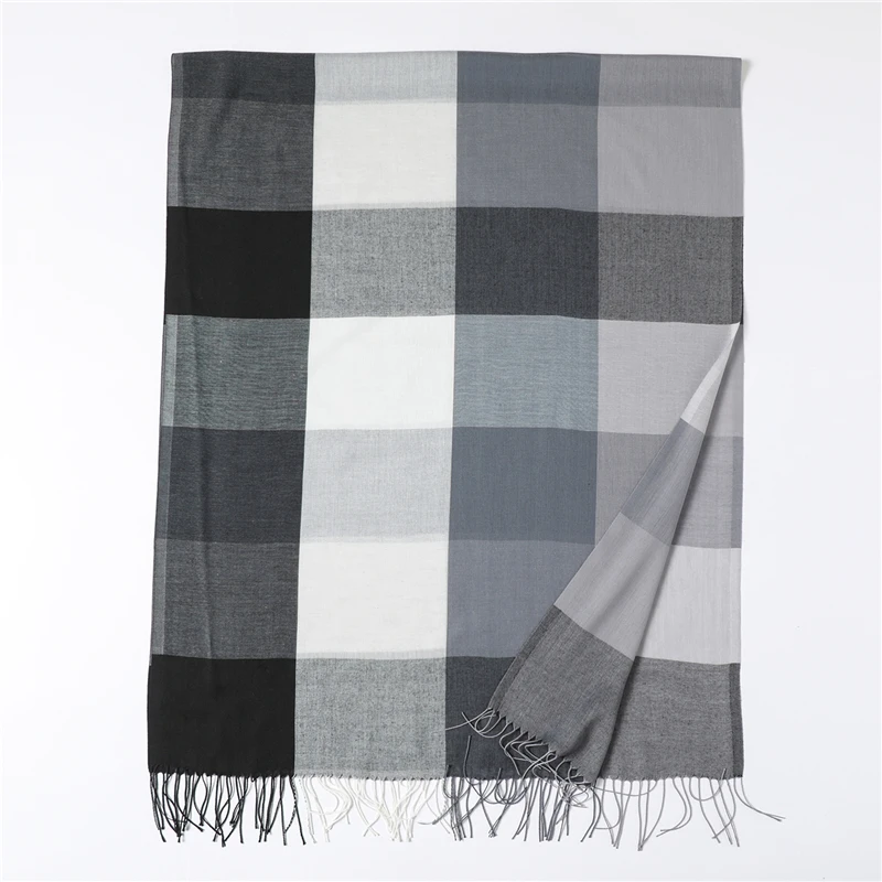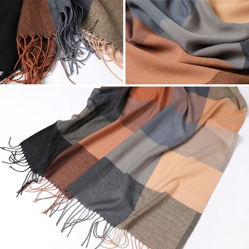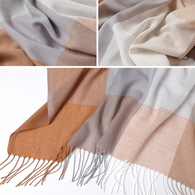 Шарф-Хиджаб Женский в клетку, Пашмина, дамские шали из фуляра, головная повязка с кисточками, кашемировые зимние шарфы, теплые женские шарфы, бандана, 2021