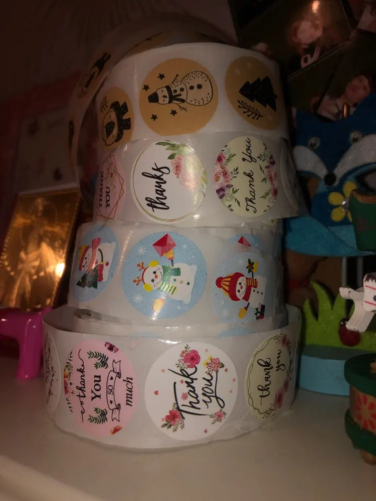 Безумно милые стикеры! Как и ожидала) они маленькие, но для моих целей отлично подходят! Только не берите такие если хотите заклеивать коробки - держать ничего не будут. Для декора отличные! Пришли чуть больше чем за месяц, но только дней 10 были у нас в стране.