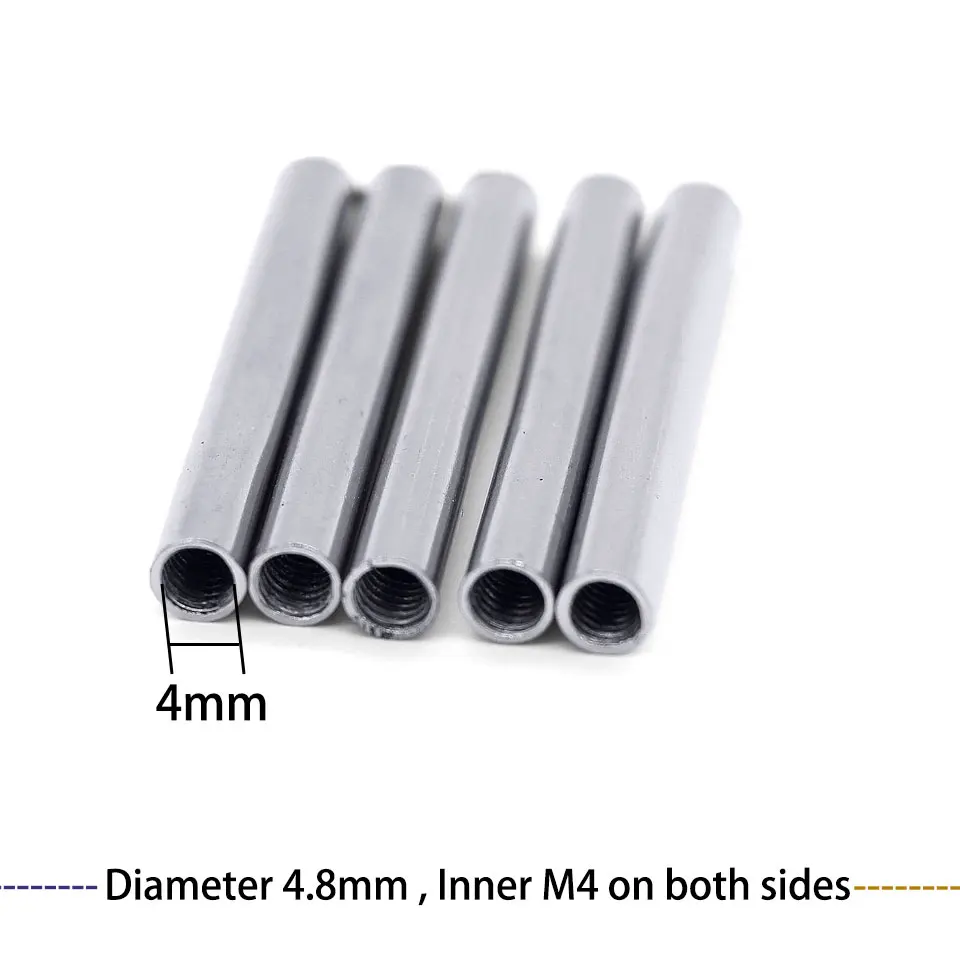 10 шт. метрические M4 полые прямые трубки с внутренней резьбой соединительные трубки Железные хромированные полые стержни диаметром 4,8 мм