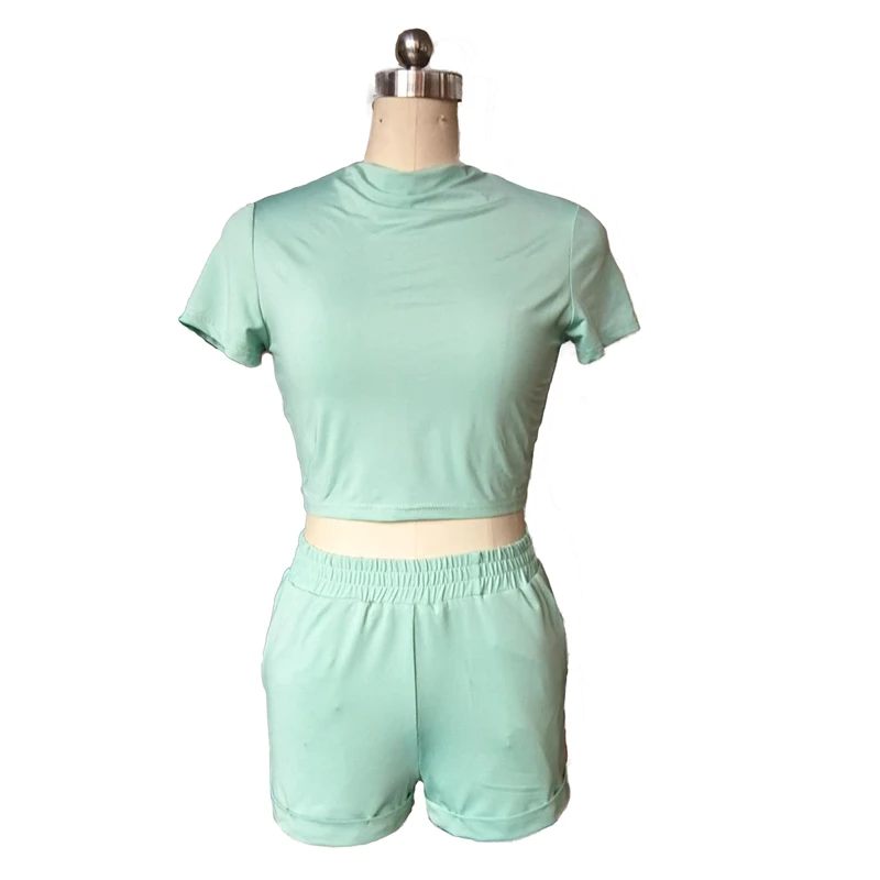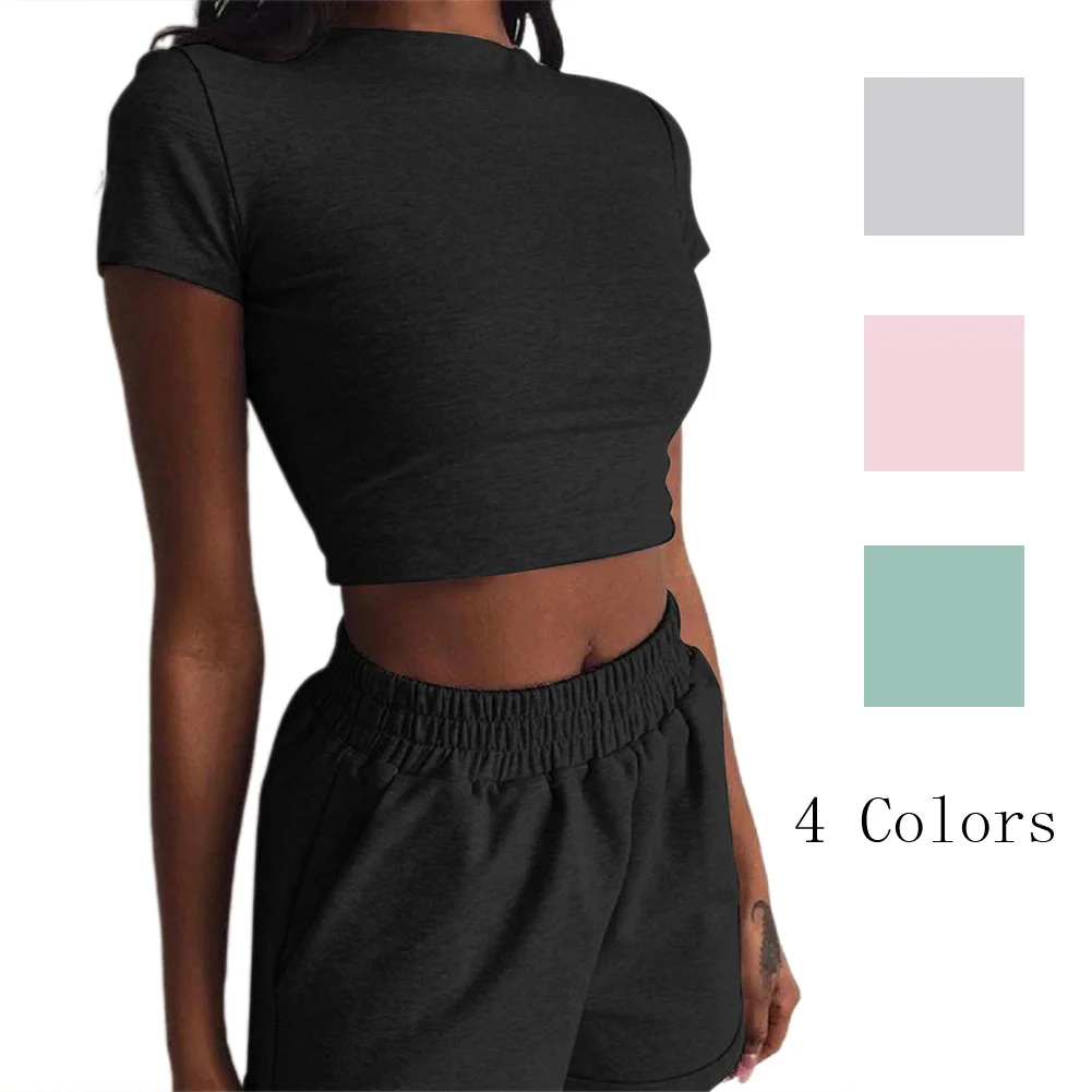 Повседневный однотонный облегающий комплект из 2 предметов, 4 цвета, летняя и осенняя женская футболка с коротким рукавом, Короткие комплекты из двух предметов, спортивный комплект для йоги