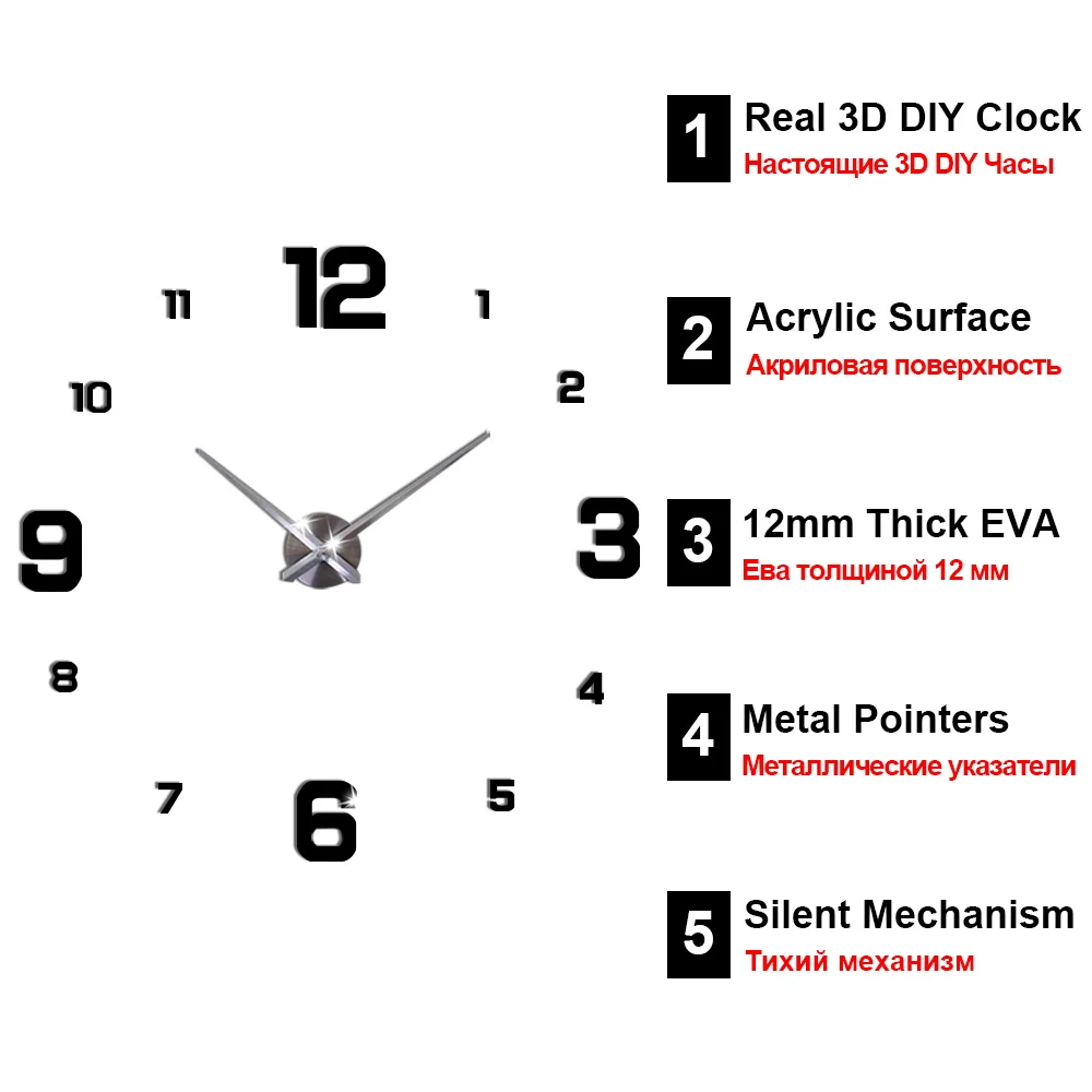 Лидер продаж, новые настенные часы, наклейки, часы, сделай сам, 3d ...