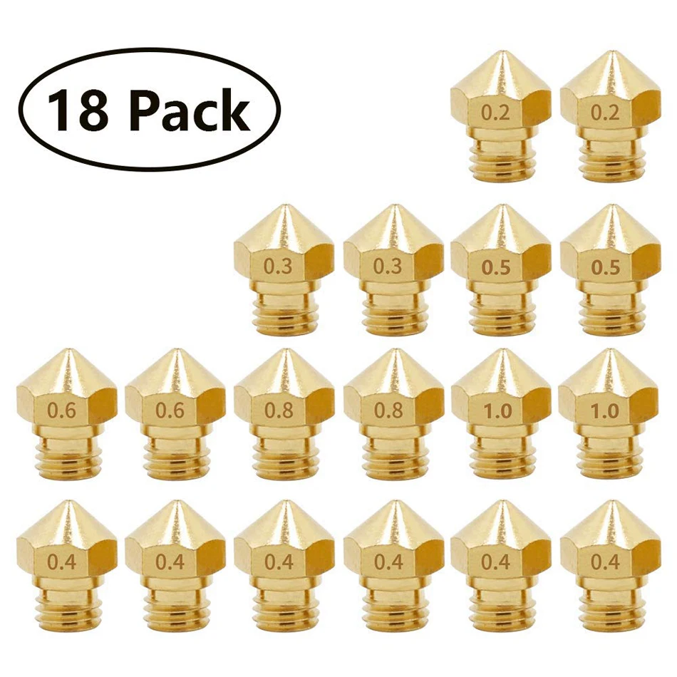 Сопла MK10 для 3D-принтера, латунные сопла экструдера M7, 18 шт., сопла Hotend 0,20,30,40,50,60,81,0 мм для Wanhao Dupicator D4