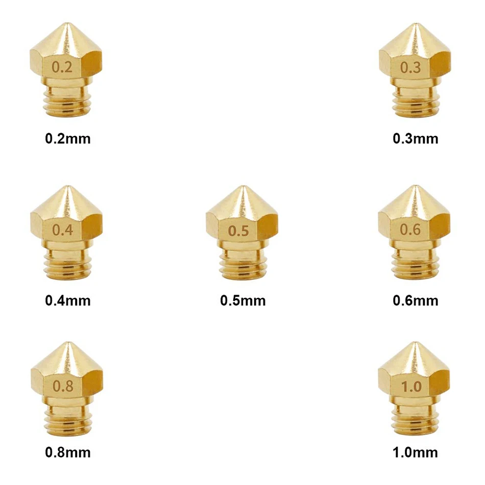 Размер: 3D сопла для принтера, резьба: M7, диаметр нити: 1. 75 мм, Диаметр выхода: 0. 2 мм, 0. 3 мм, 0. 4 мм, 0. 5 мм, 0. 6 мм, 0. 8 мм, 1. 0 мм.