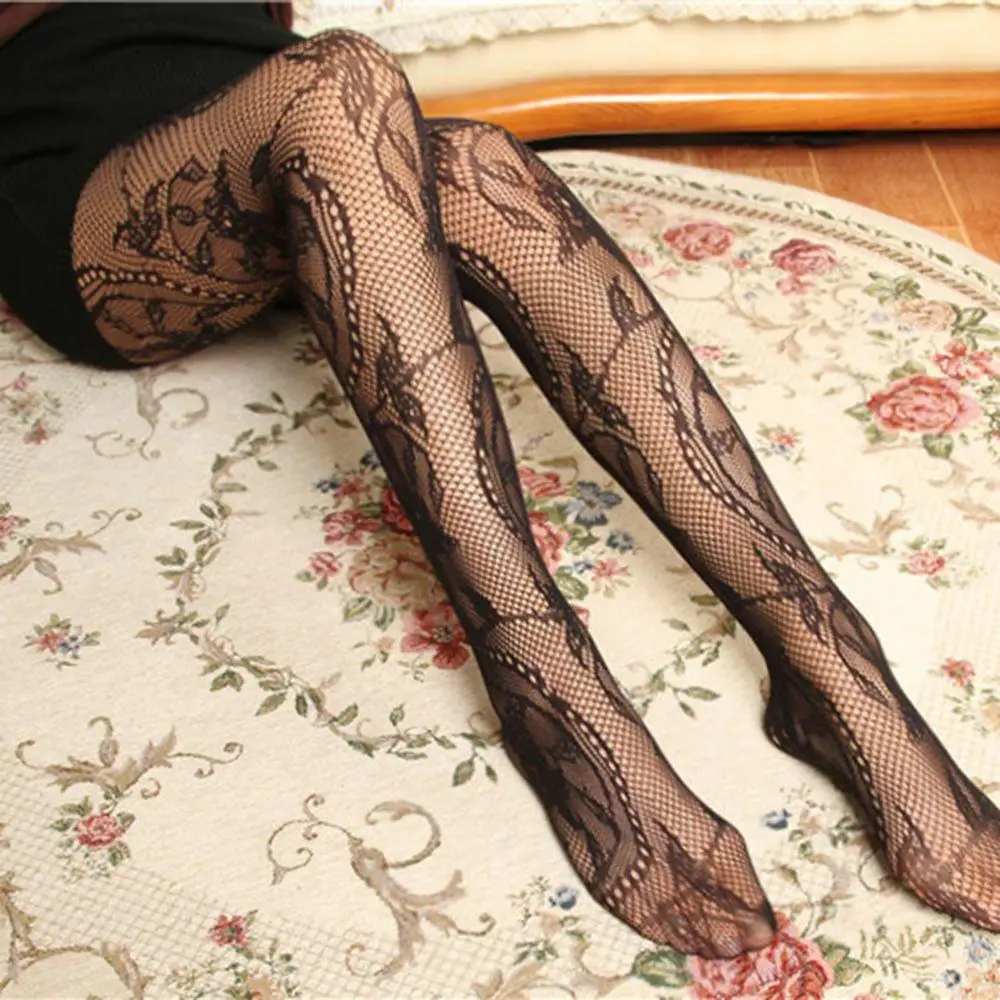 Тонкие колготки, блестящие колготки, черный цвет, цветочный узор, летние винтажные кружевные сексуальные шелковые чулки