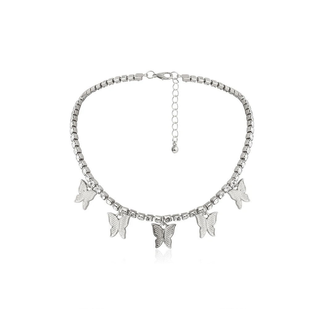 Женское ожерелье с подвеской-бабочкой, серебристое ожерелье-чокер в...