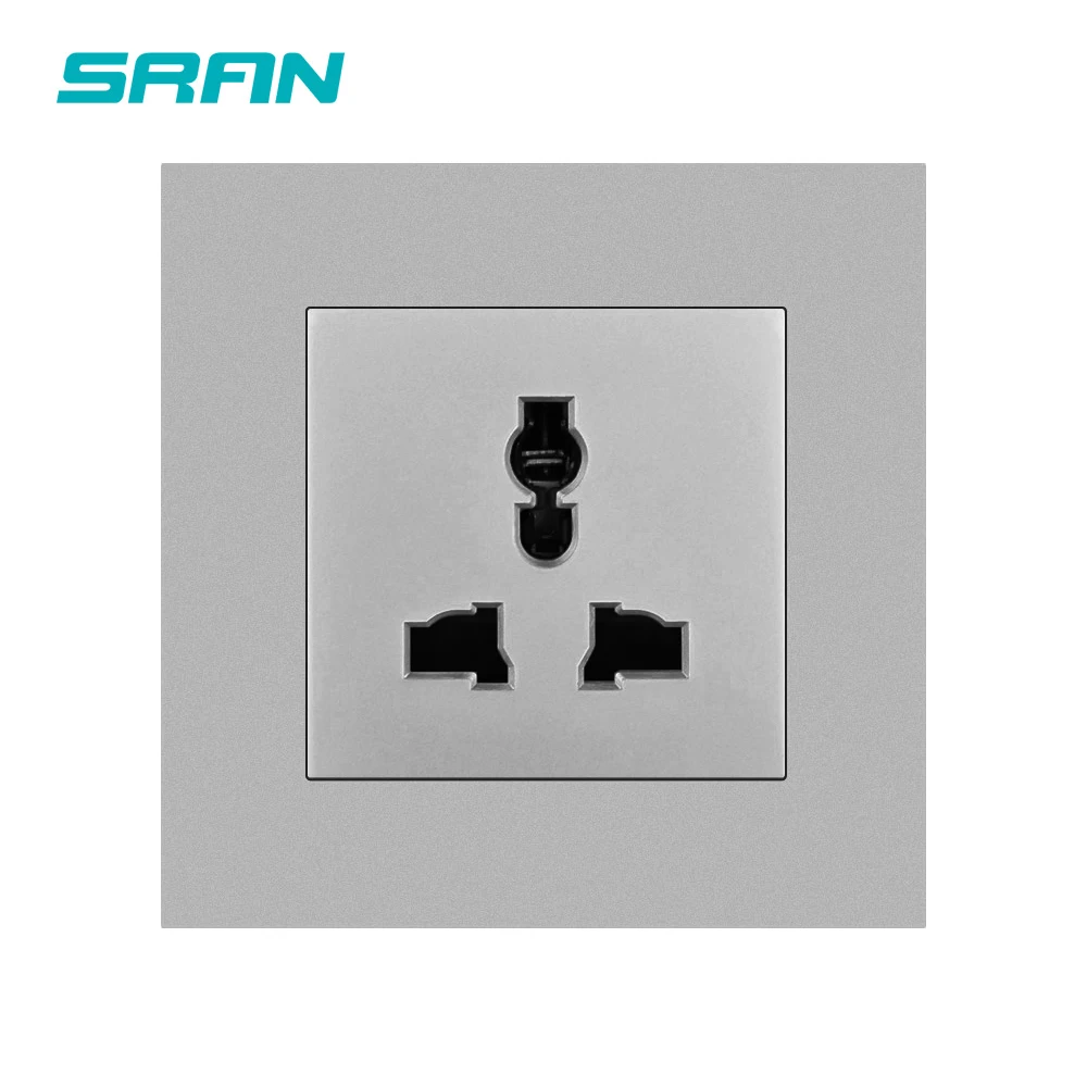 SRAN универсальная 3-контактная розетка питания, 13A 250В белыйчерныйзолотойсерыйсеребристый pc панель 86 мм * 86 мм Настенная розетка