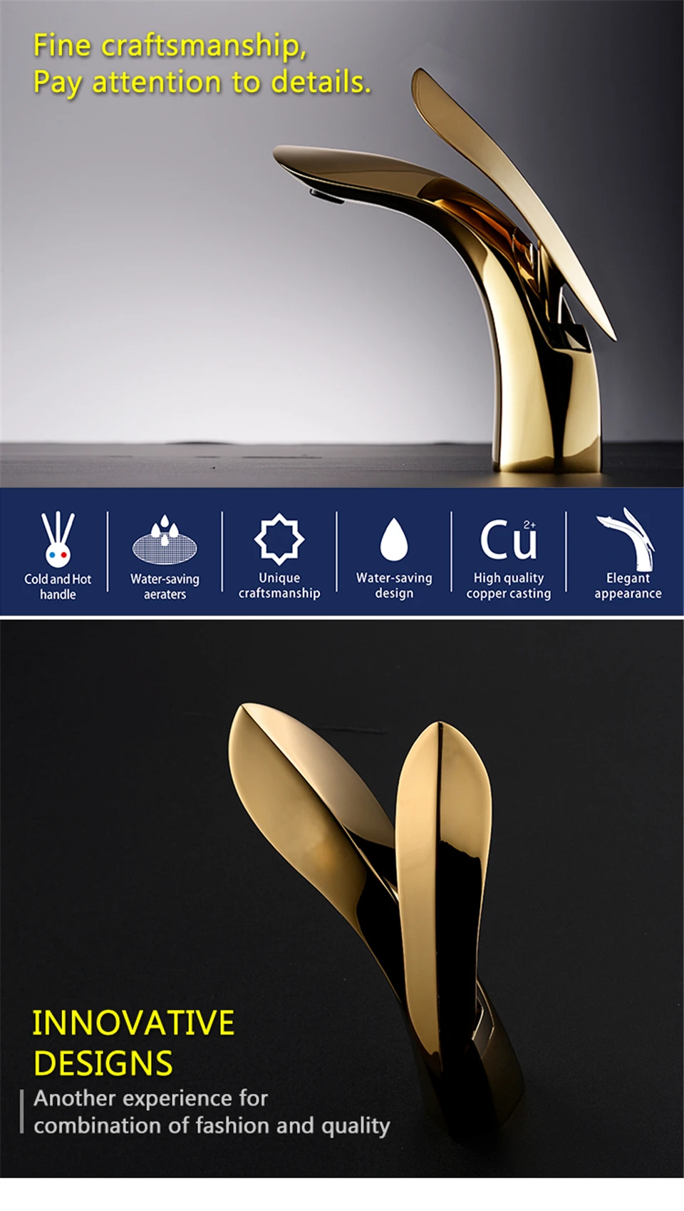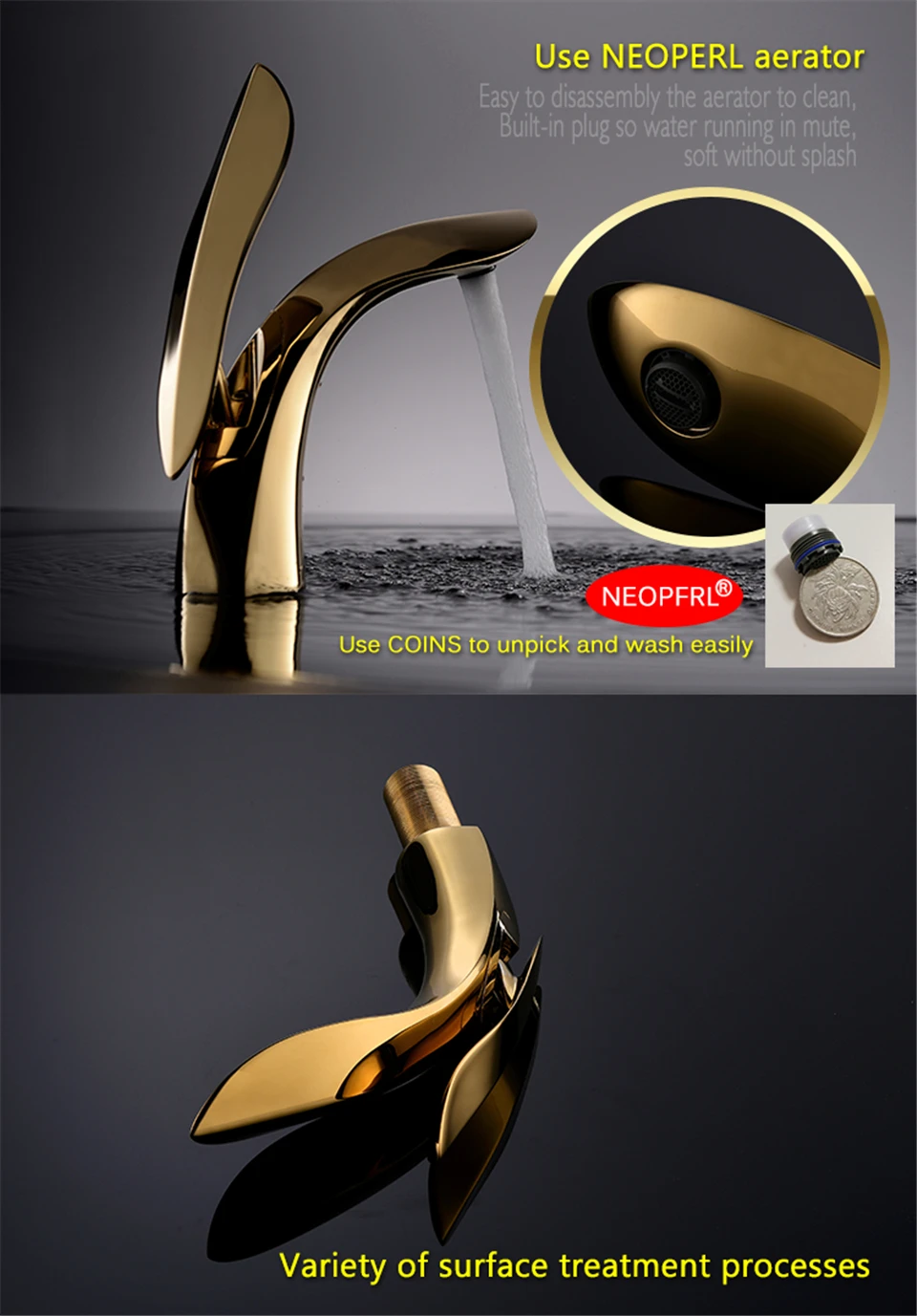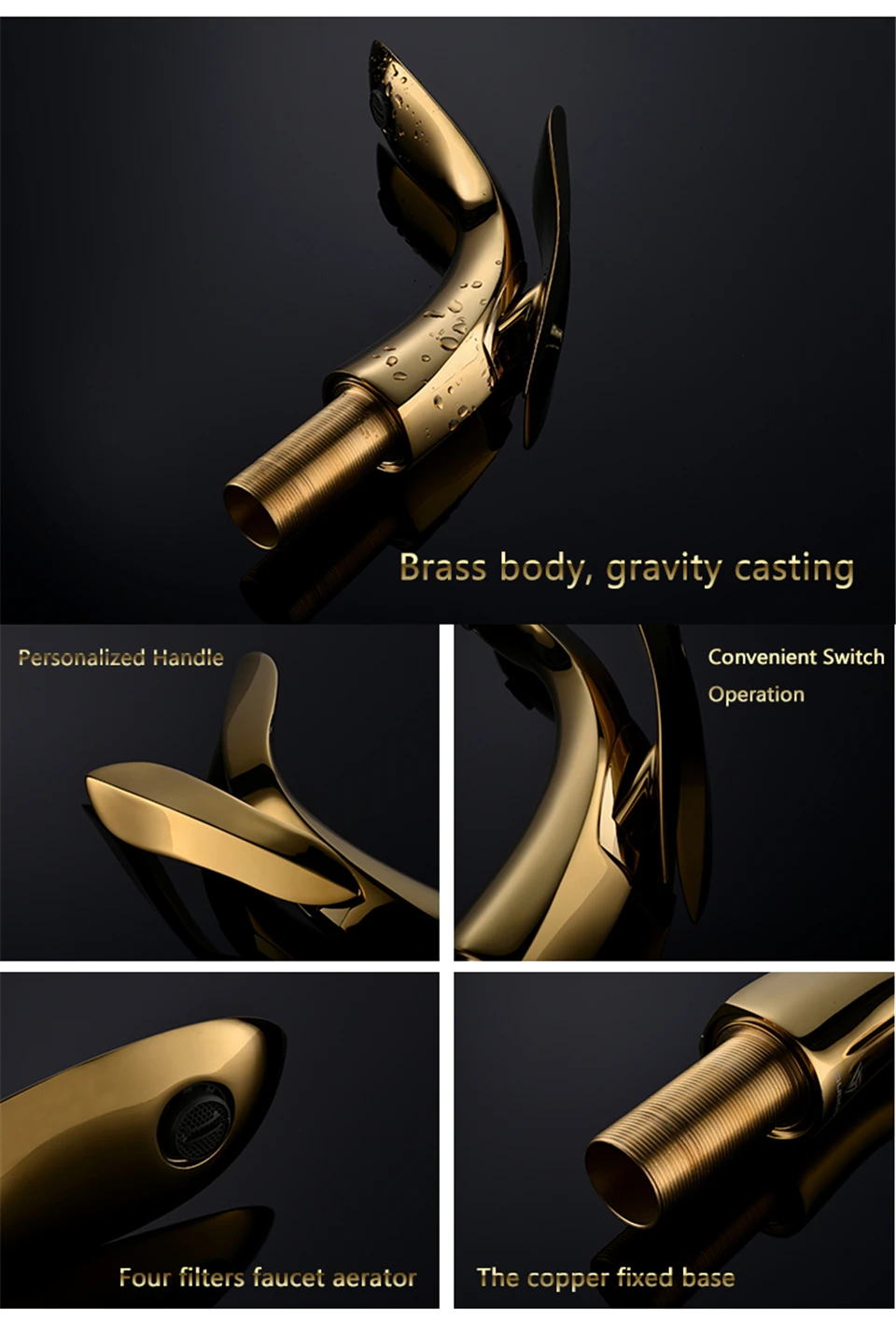 Смесители для раковины, золотой латунный Смеситель для ванной комна...
