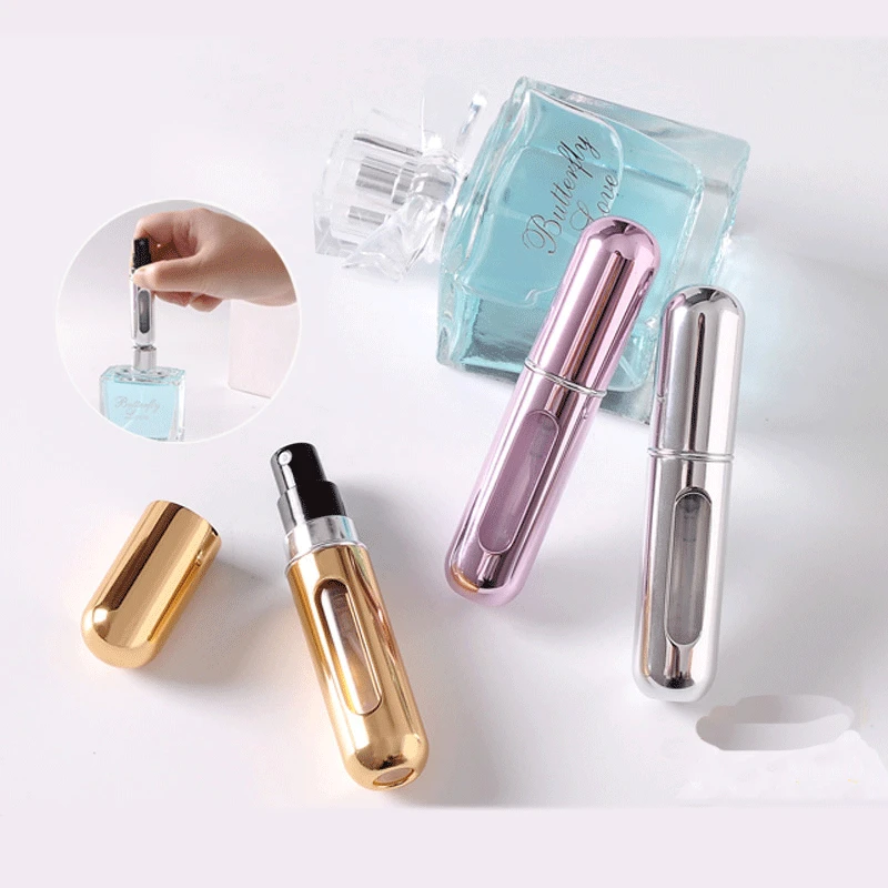 Металлический многоразовый мини-распылитель для духов, дорожный размер Алюминиевый распылитель для парфюма, 5 мл