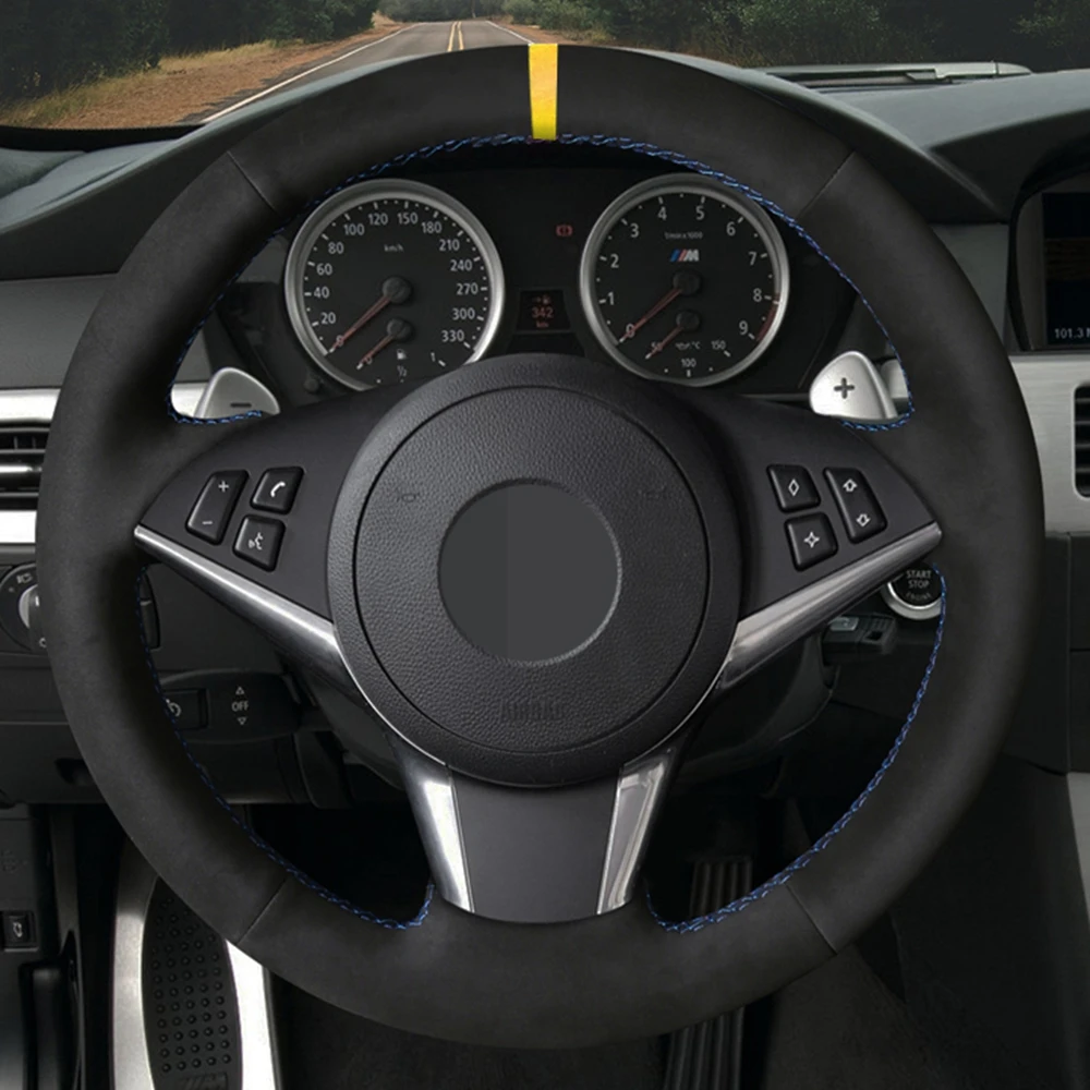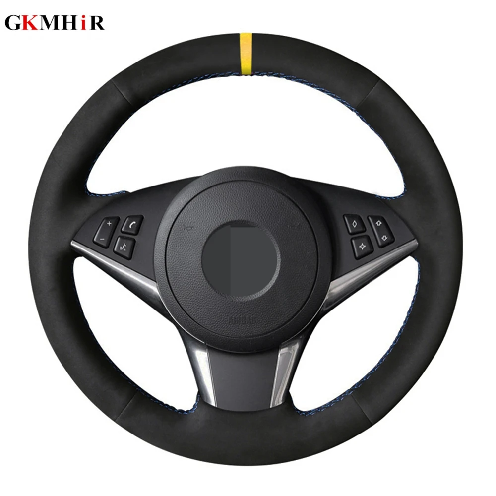Сделай сам черного цвета из натуральной кожи и замши чехол рулевого колеса автомобиля для BMW E60 530d 545i 550i E61 E63 E64 630i 645Ci 650i 2004-2009