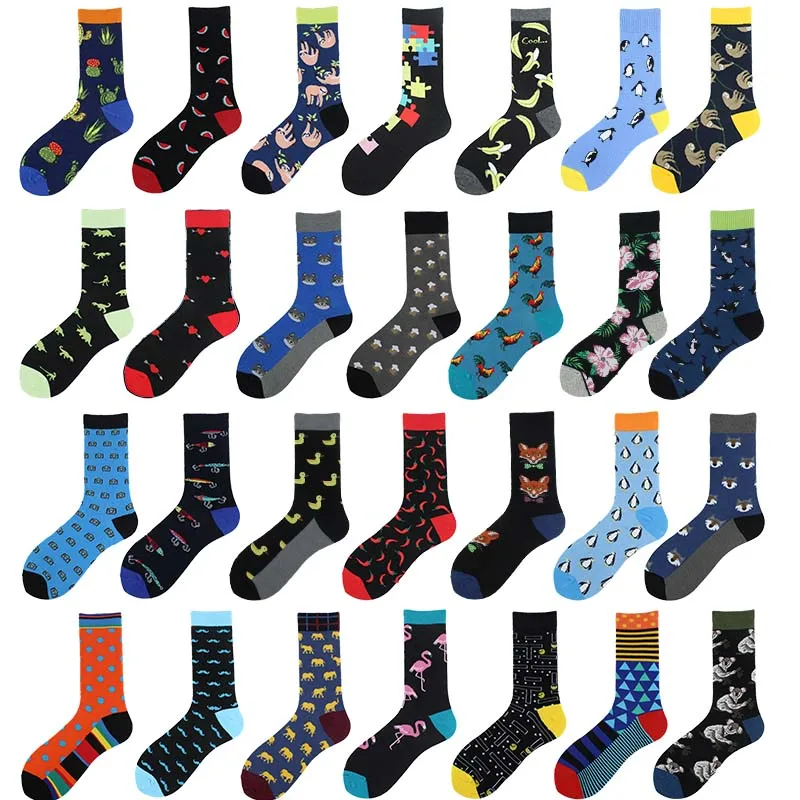 Носки мужские смешные для свадьбы, чесаный хлопок, креативные носки с музыкальным яйцом, гамбургером, динозавром, пингвином, Чили
