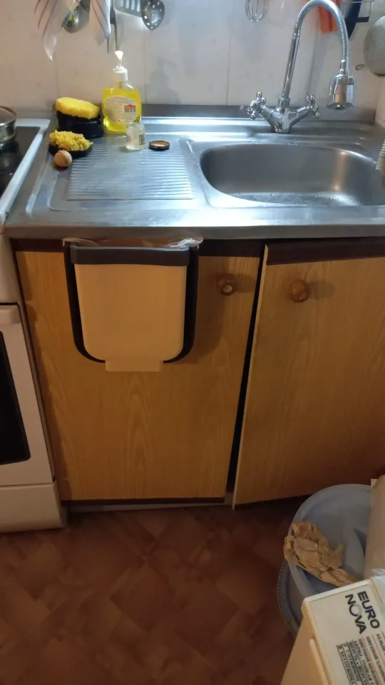 Отличное компактное ведро. Много мусора туда, конечно не положишь, но зато и копиться не будет. В раскрытом состоянии может стоять на полу, хотя его предполагаемое место - на фасаде нижнего элемента кухни, ЕСЛИ НЕТ ГОРИЗОНТАЛЬНОЙ РУЧКИ по центру фасада!!! Крышки нет, тоже, видимо, для того, чтобы мусор сразу выносить. Всё отлично, но, всё-таки, 850₽ за такое ведро - это много)))