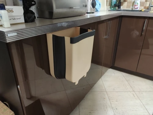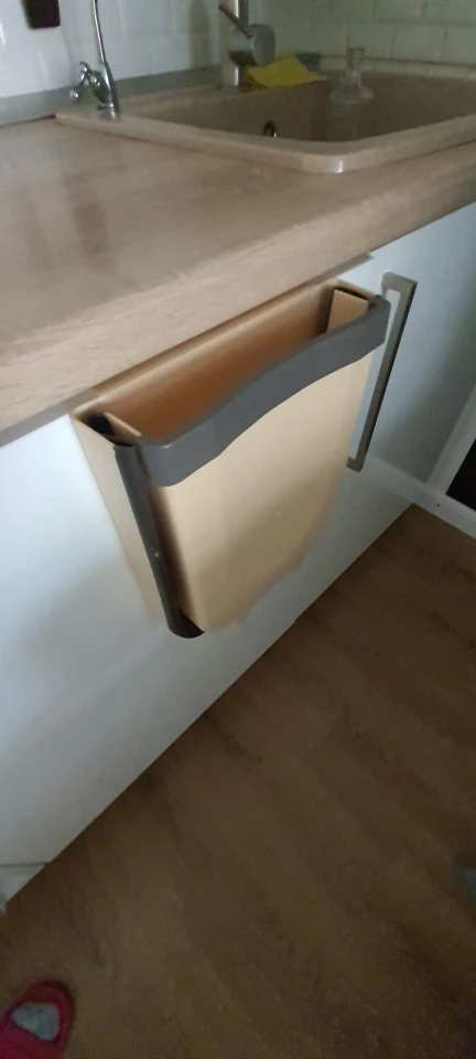 Просто гениальная находка. Ведёрко складывается при необходимости. На 5 литров небольшое, но достаточно. Сложно одеть на дверку так как зазор тонкий, небольшой совсем, но зато держит очень плотно. Доставка быстрая.