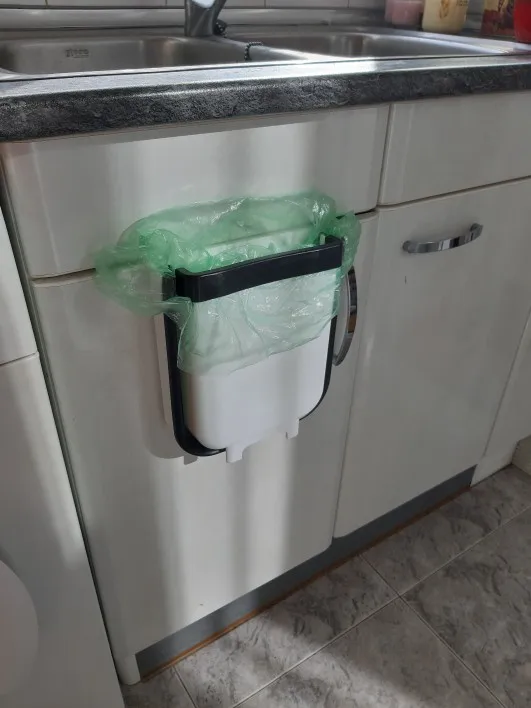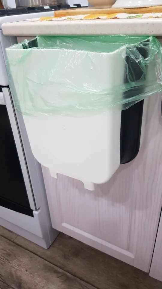 очень удобная вещь. хорошо, что взяла на 9 литров. мусорка не большая. на дверь шкафчика в самый раз. доставка быстрая.