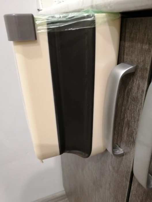 Крючок, который цепляется к дверце довольно толстый, у меня на кухне зазоры маленькие, не подошёл, надо дверцу перевешивать, а так прикольно. Пришло все быстро