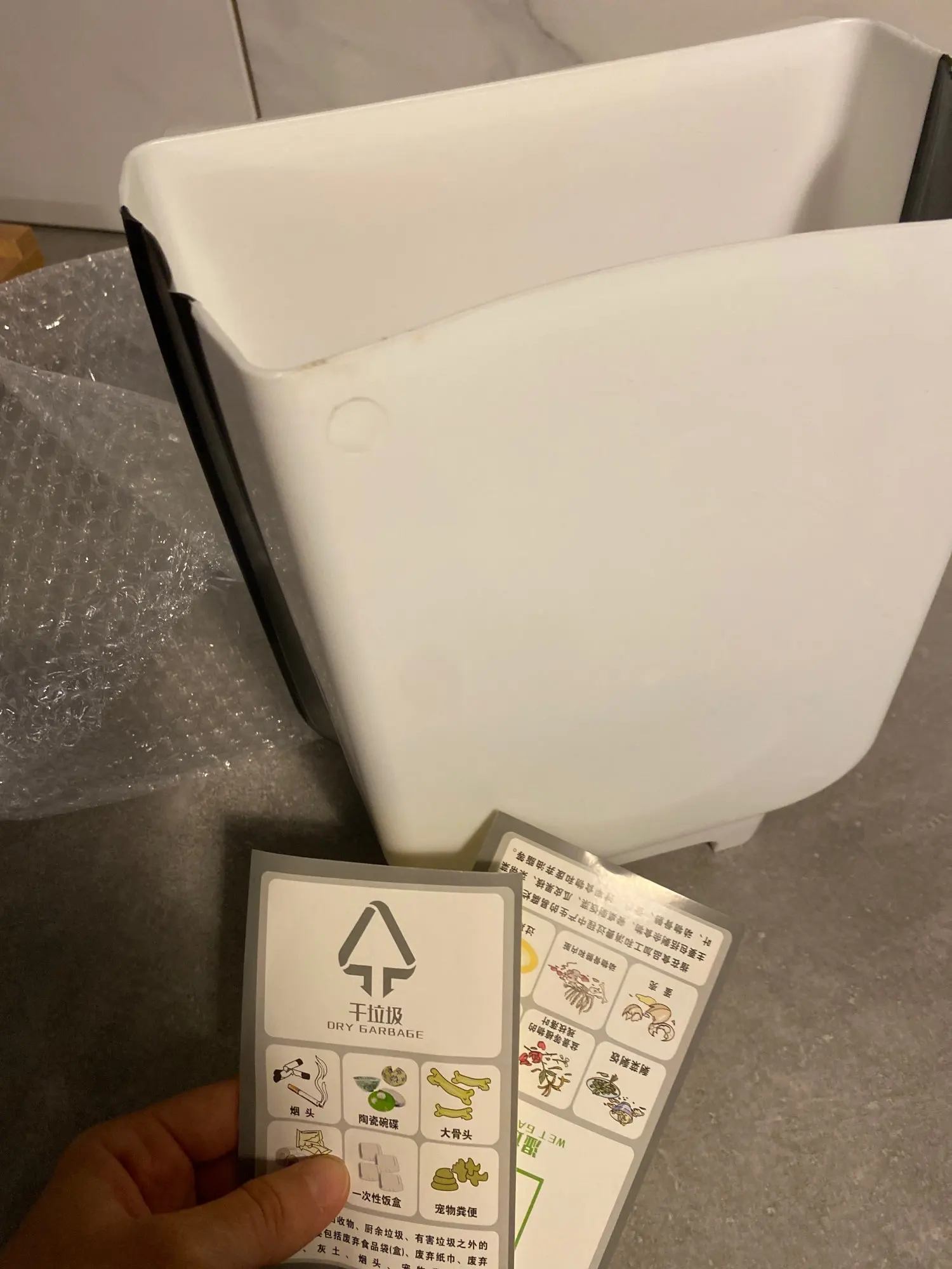 прикольная мусорка, компактная и стильная. В подарок пакеты для мусора, а также в комплекте идут 2е наклейки, для разделения мусора, на органический и который нужно перерабатывать. За это отдельный +. Спасибо:)