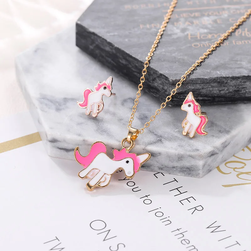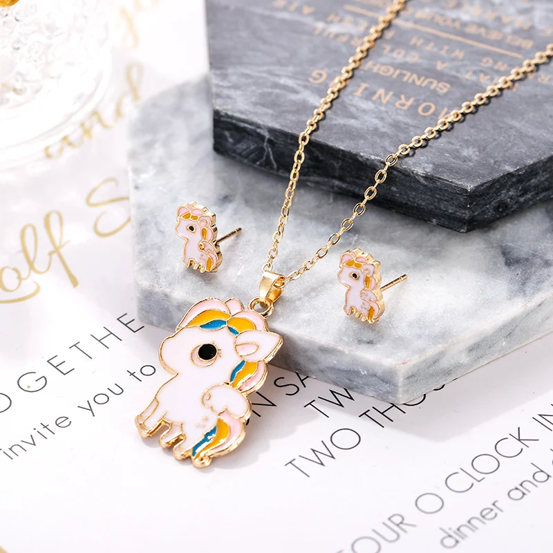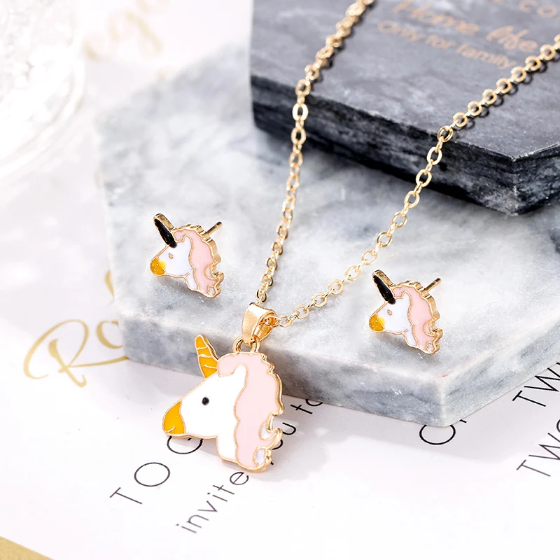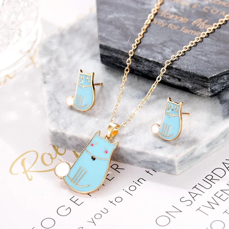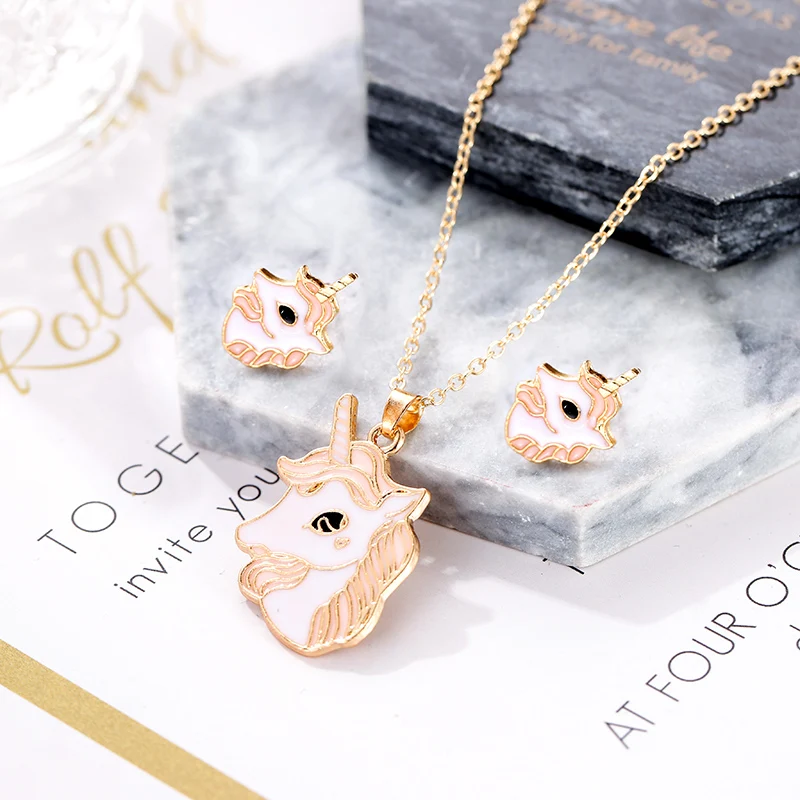 Женский комплект украшений с эмалью, кулон с животным, котом, единорогом, серьги-гвоздики, вечерние свадебные аксессуары, 2020