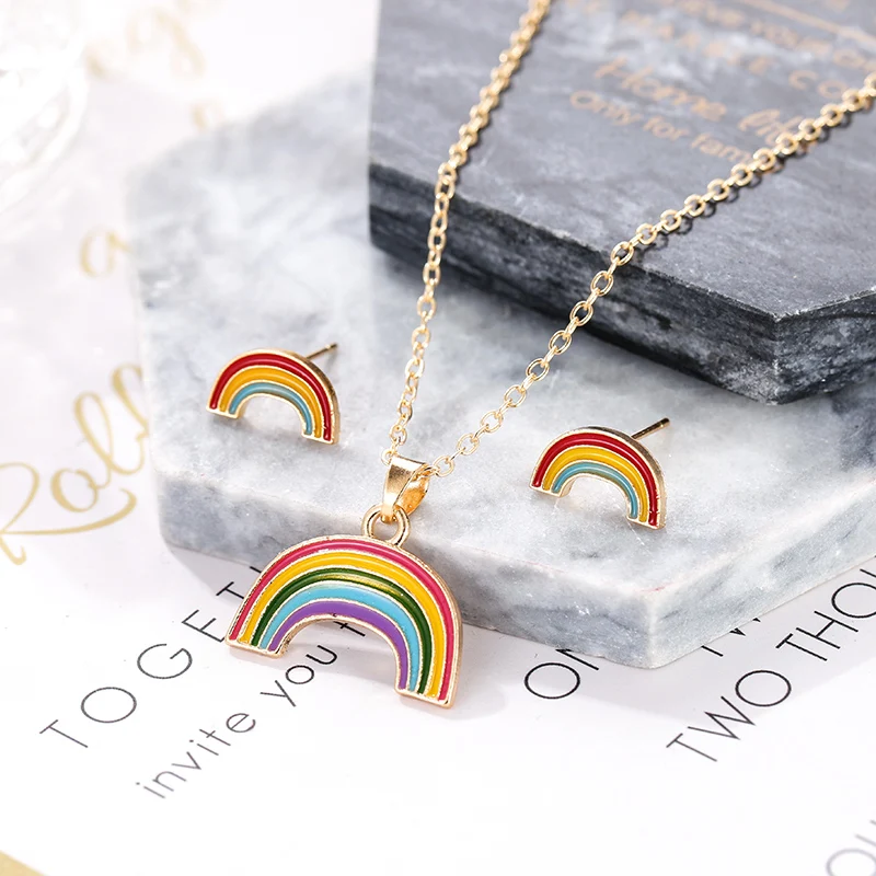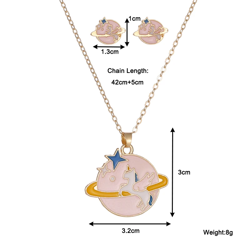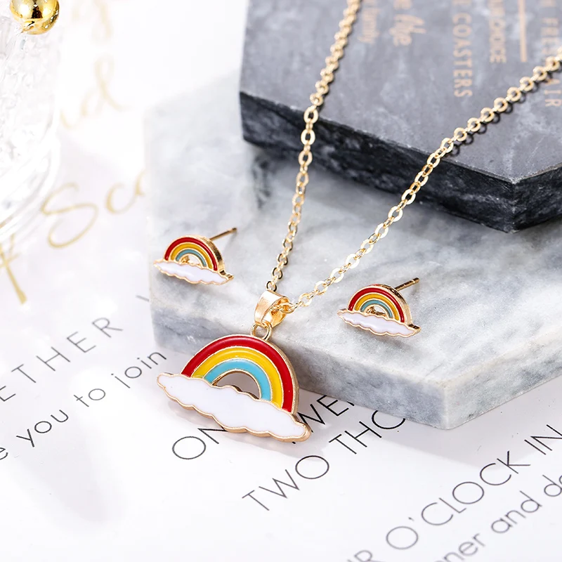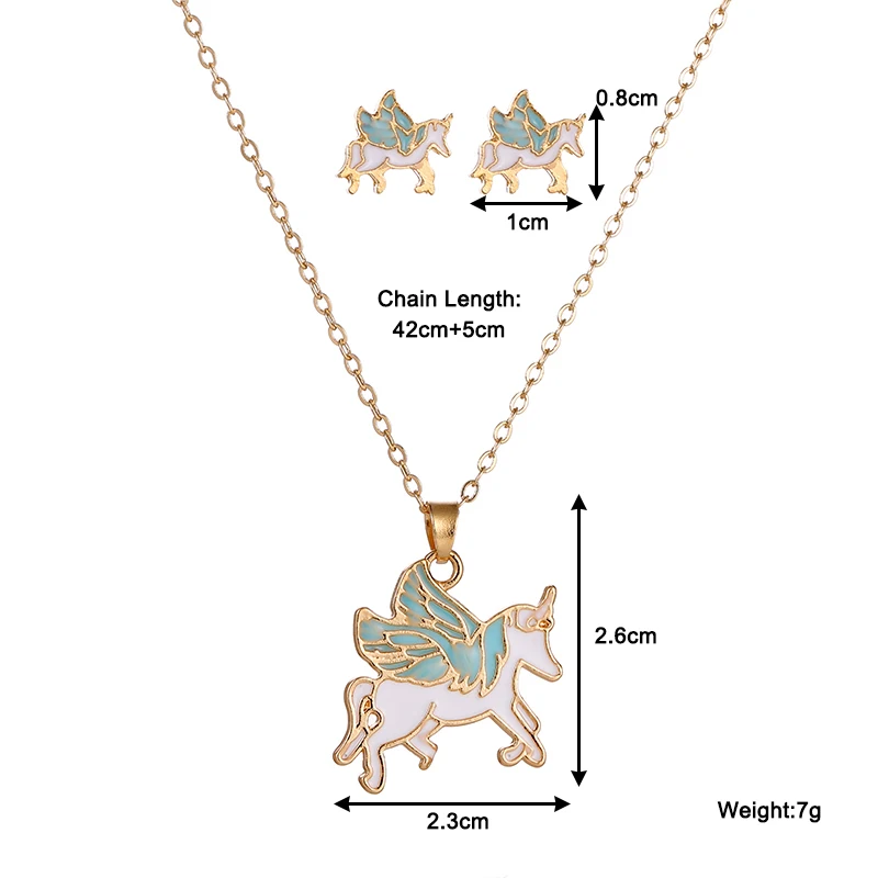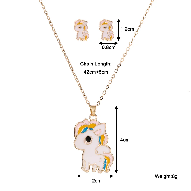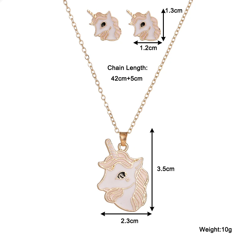 Женский комплект украшений с эмалью, кулон с животным, котом, единорогом, серьги-гвоздики, вечерние свадебные аксессуары, 2020