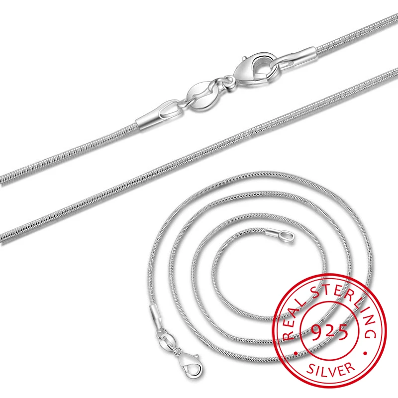 40 см-60 см крошечное Настоящее серебро 925 пробы 1 мм2 мм тонкая круглая цепочка-змейка колье ожерелье женское ювелирное изделие Italy Collier Collares подарок