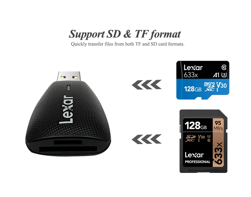 Кардридер Lexar 2 в 1, высокоскоростной Многофункциональный кардридер USB 3,1, кардридер SDHC SDXC для SD-карты, TF-карты
